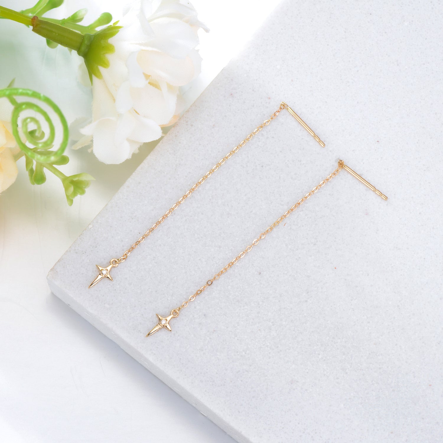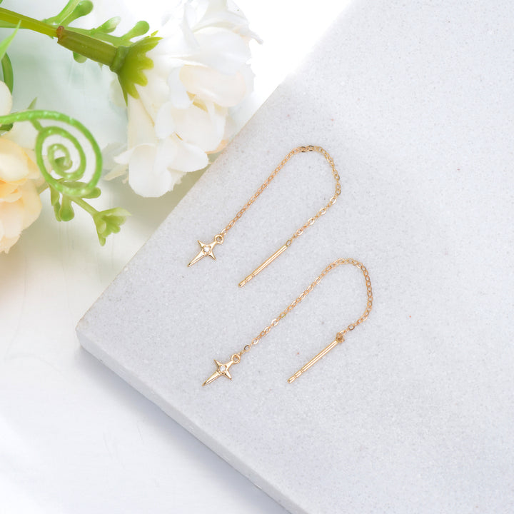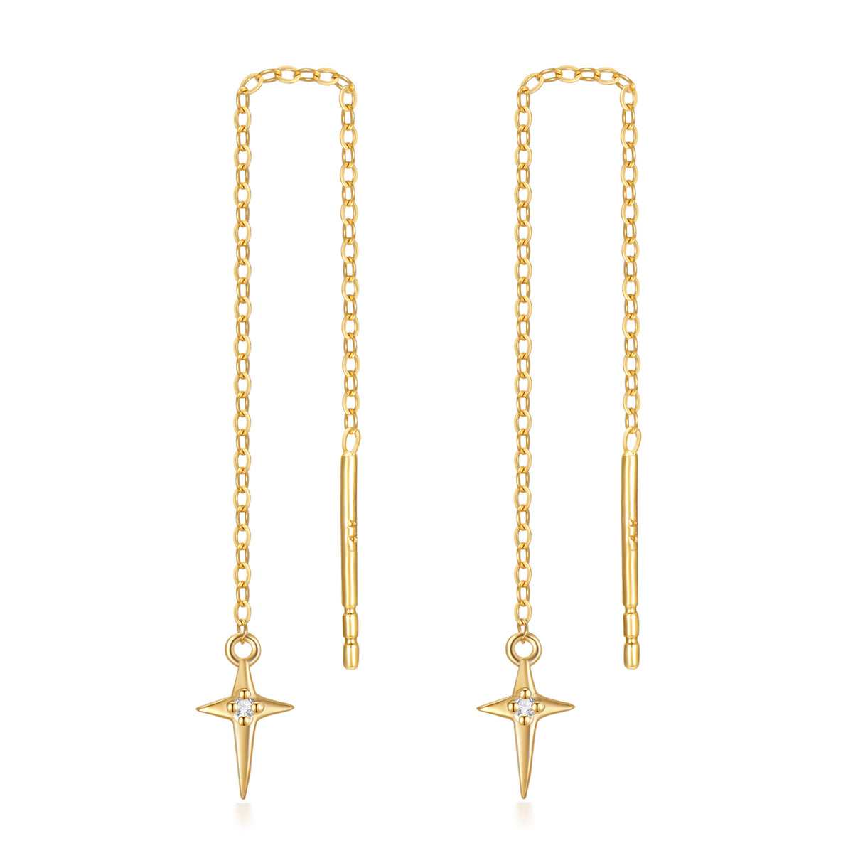 These Drop Earrings are crafted from High-Quality 14K Gold, Featuring Round Moissanite Stones Set in a Classic Cross Design.