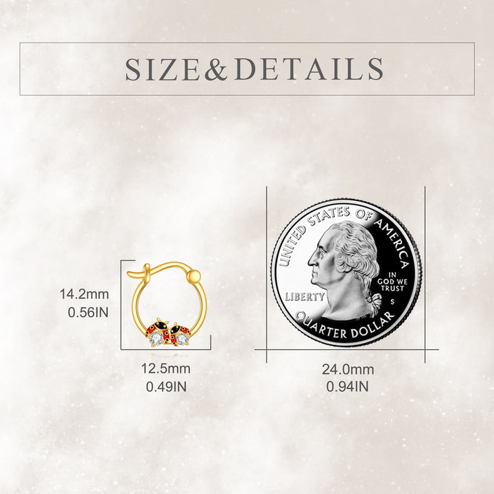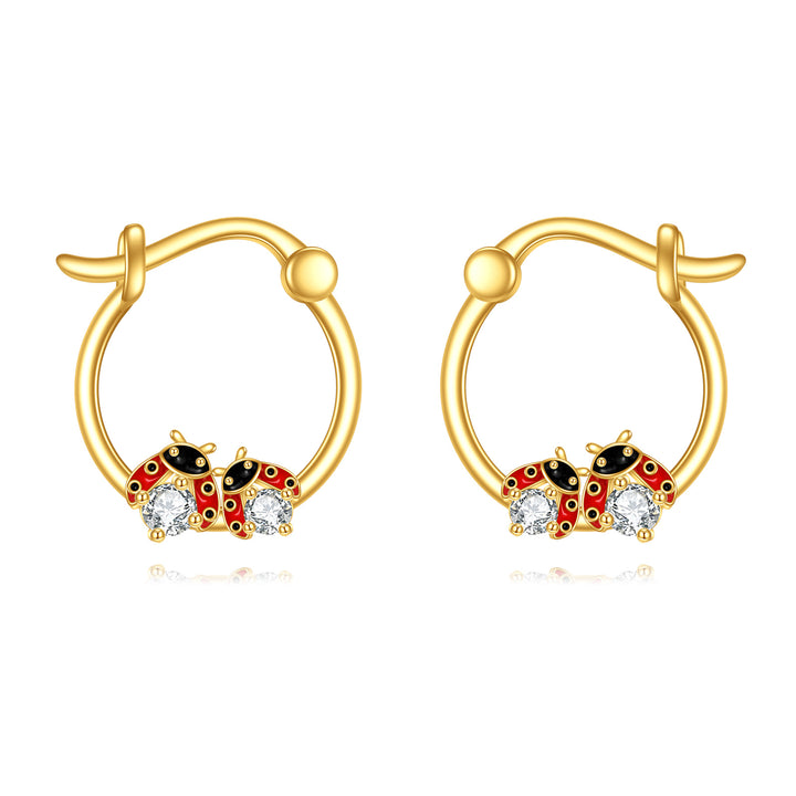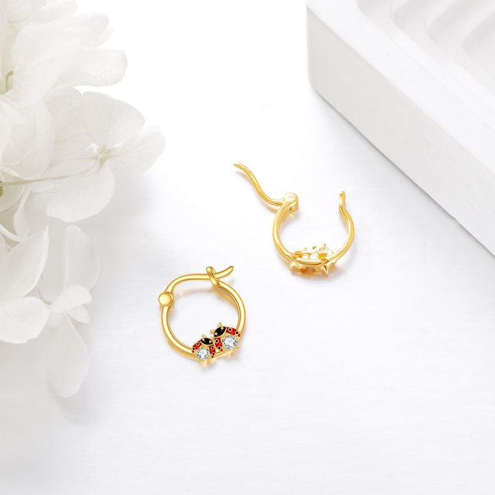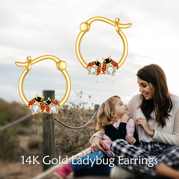 14K Gold Cubic Zirconia Ladybug Hoop Earrings