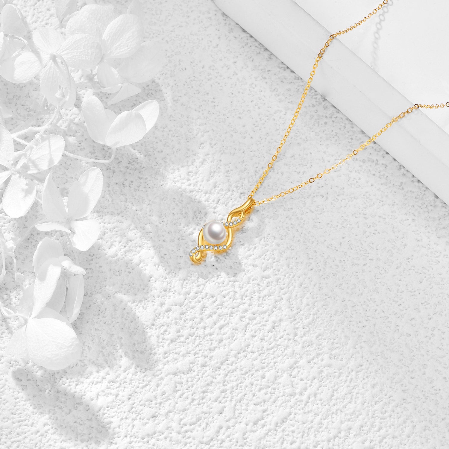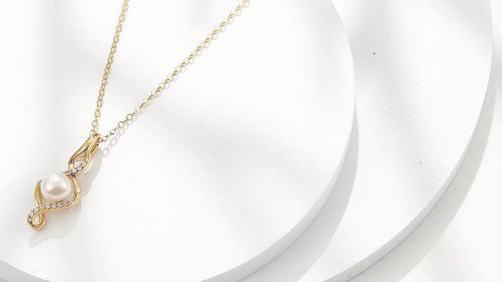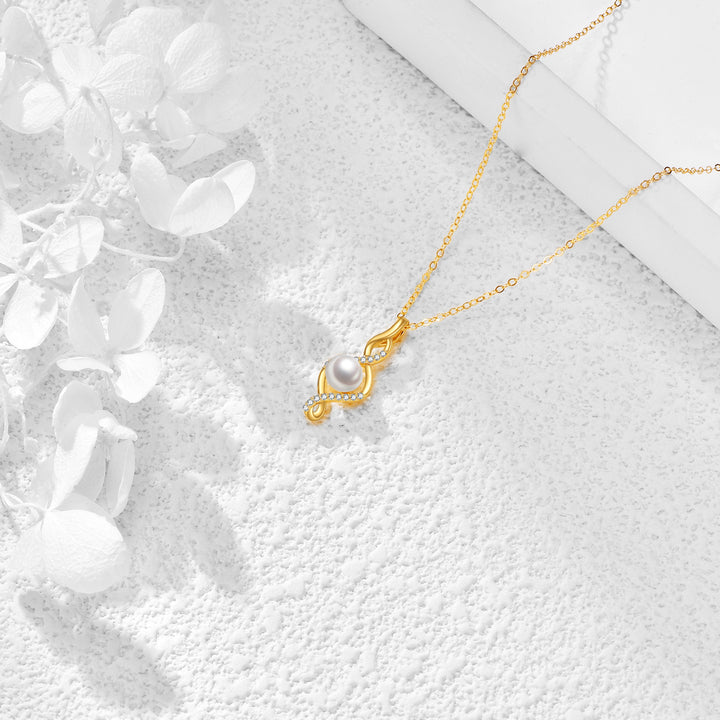 14K Gold Round Pearl Infinity Symbol Pendant Necklace