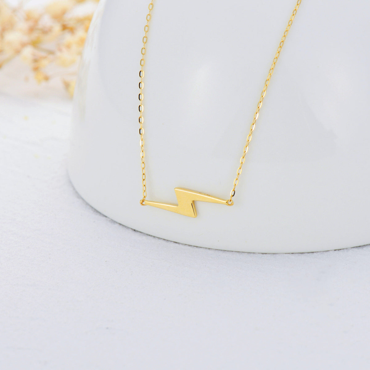Crafted in 14K gold. Stone-free lightning pendant design. Includes coordinating gold chain.