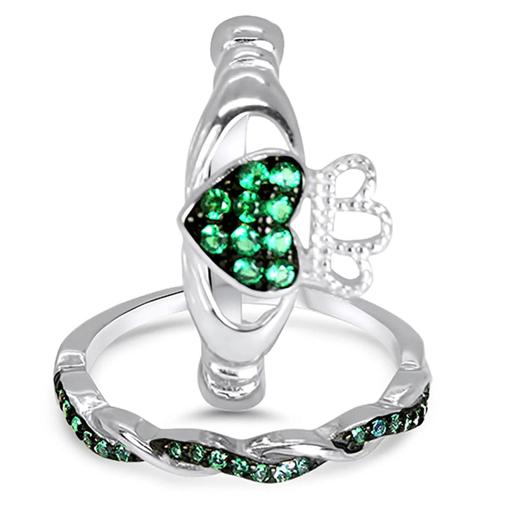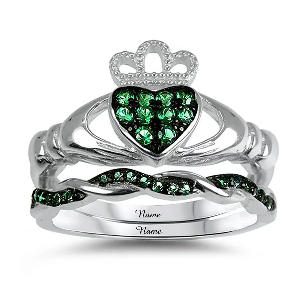 10K White Gold Cubic Zirconia Claddagh & Heart Engagement Ring