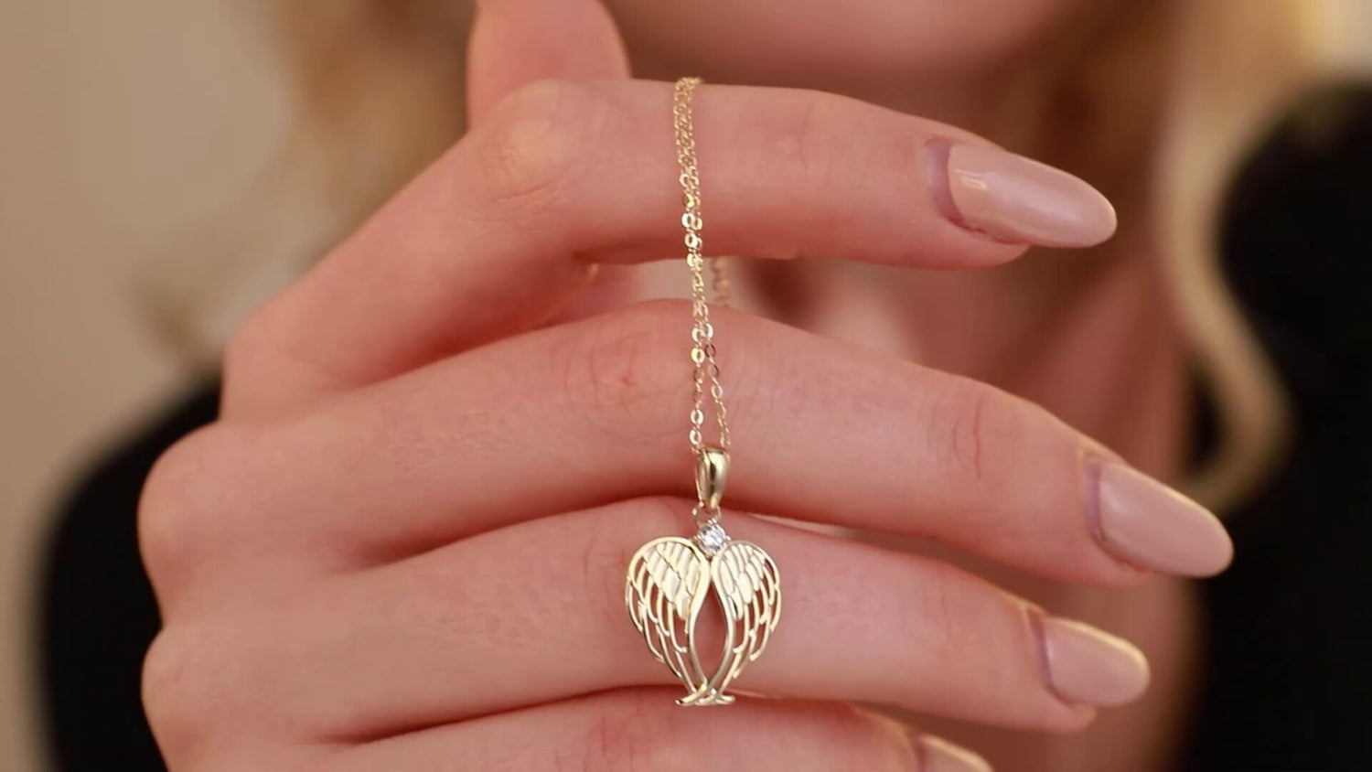 14K Gold Cubic Zirconia Angel Wings Heart Shaped Pendant Necklace