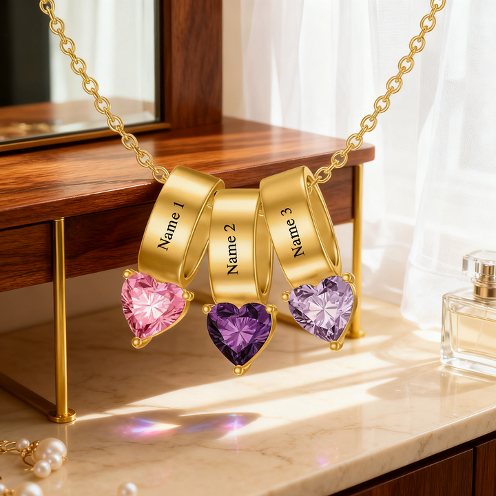 14K Gold Heart Cubic Zirconia Personalized Birthstone & Classic Name Pendant Necklace For Women