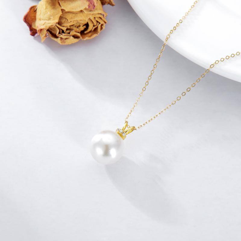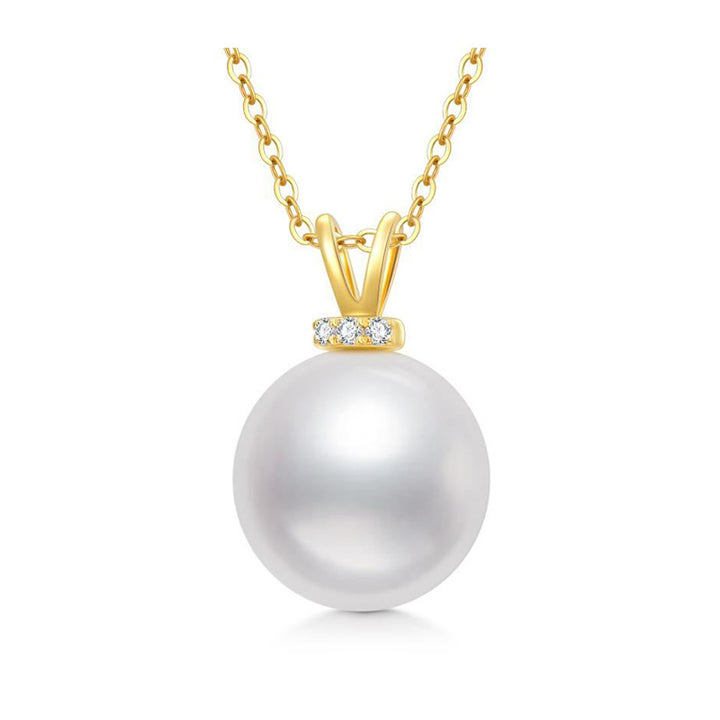 14K Gold Moissanite & Pearl Mother Pendant Necklace