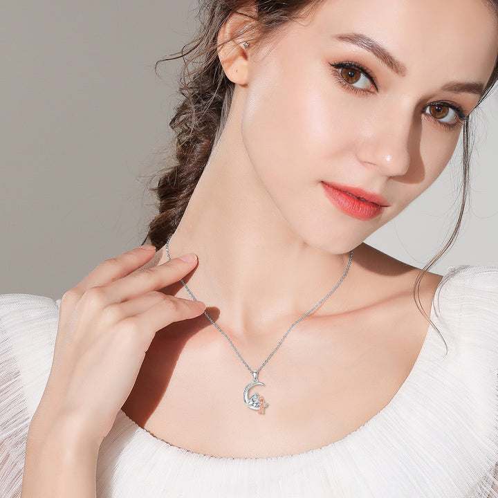 This Sterling Silver Two-tone Round Diamond Horse & Moon Pendant Necklace by YFN captures imagination with its enchanting blend of elegance and symbolism, designed specifically for women. The circular pendant features a radiant round diamond that illuminates an intricately sculpted horse and crescent moon motif, representing freedom, grace, and intuition. Crafted from sterling silver with delicate rose gold accents, the two-tone finish adds depth and modern sophistication. This poetic and meticulously detailed piece brings together artistry and luxury, making it a versatile accessory that enhances any wardrobe with its captivating charm.