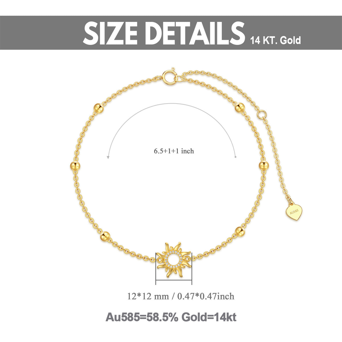 14K Gold Cubic Zirconia Bead & Sun Charm Bracelet