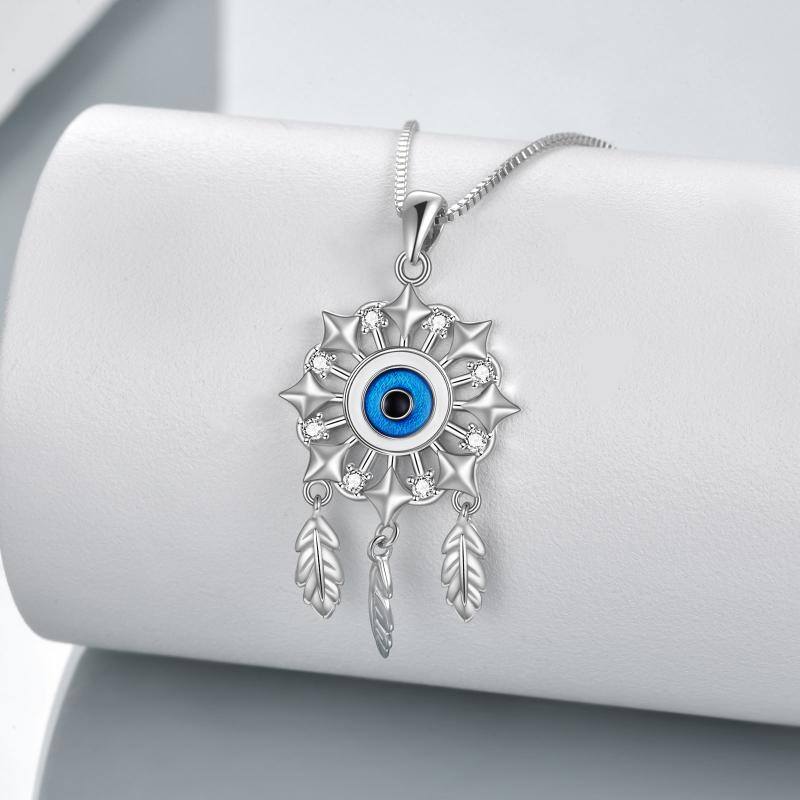 Sterling silver; white-gold plating; dream catcher pendant; silver chain.