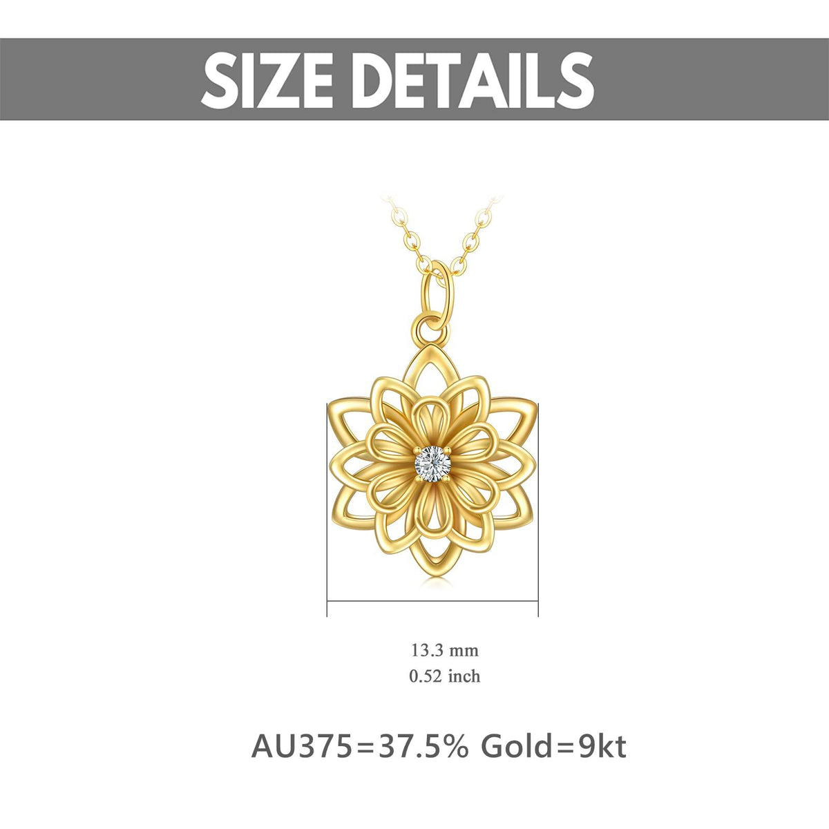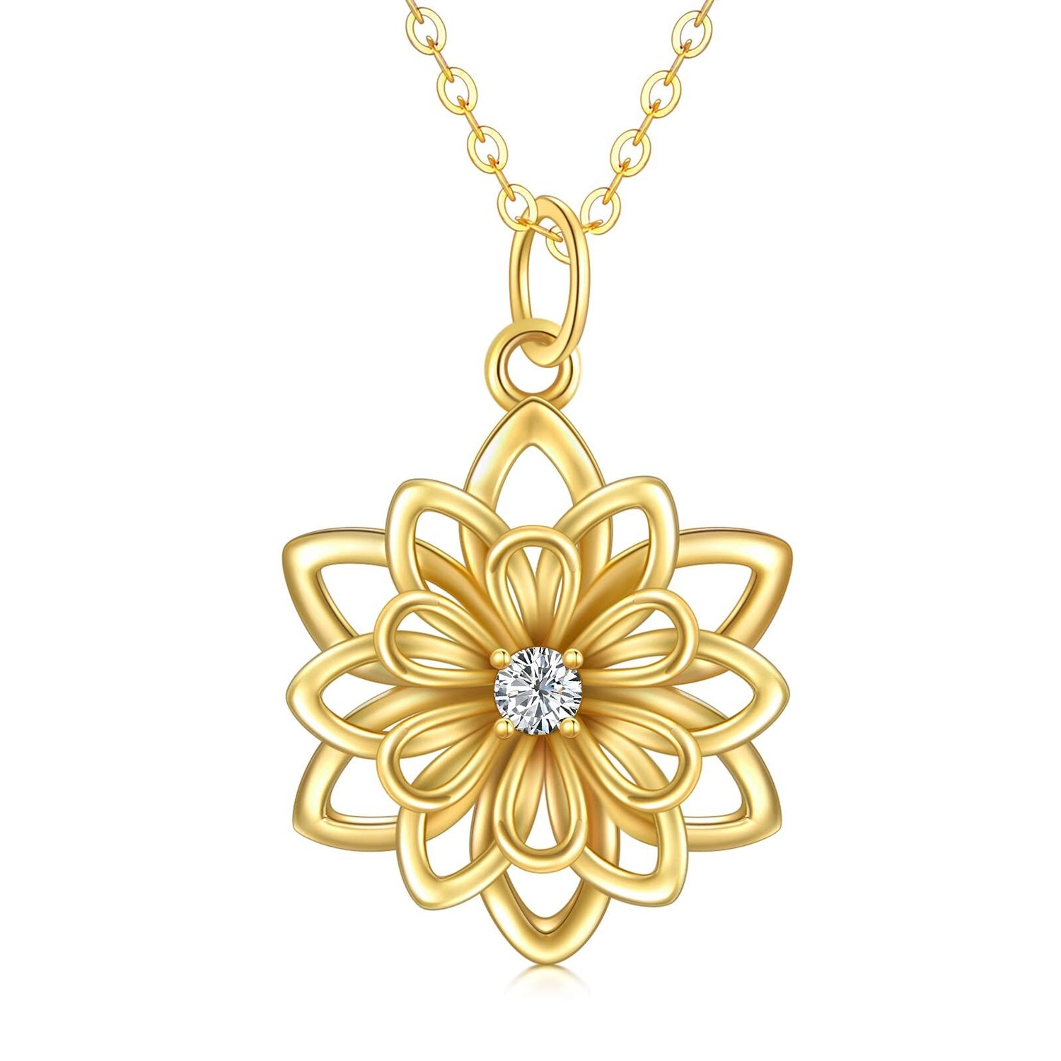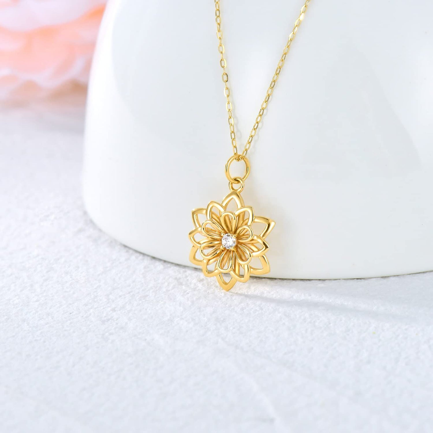 9K Gold Circular Shaped Cubic Zirconia Daisy Pendant Necklace