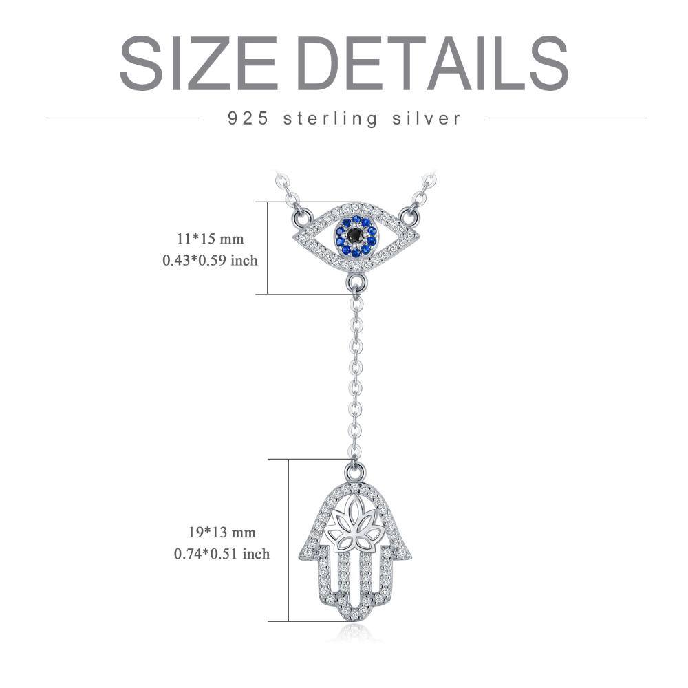 Sterling Silver Round Cubic Zirconia Evil Eye & Hamsa Hand Non-adjustable Y-Necklace