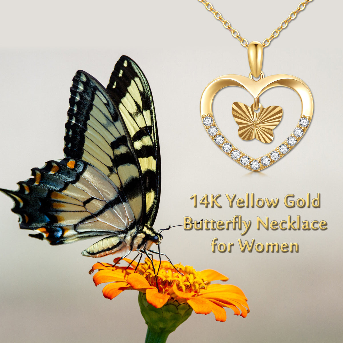 9K Gold Circular Shaped Moissanite Butterfly Pendant Necklace
