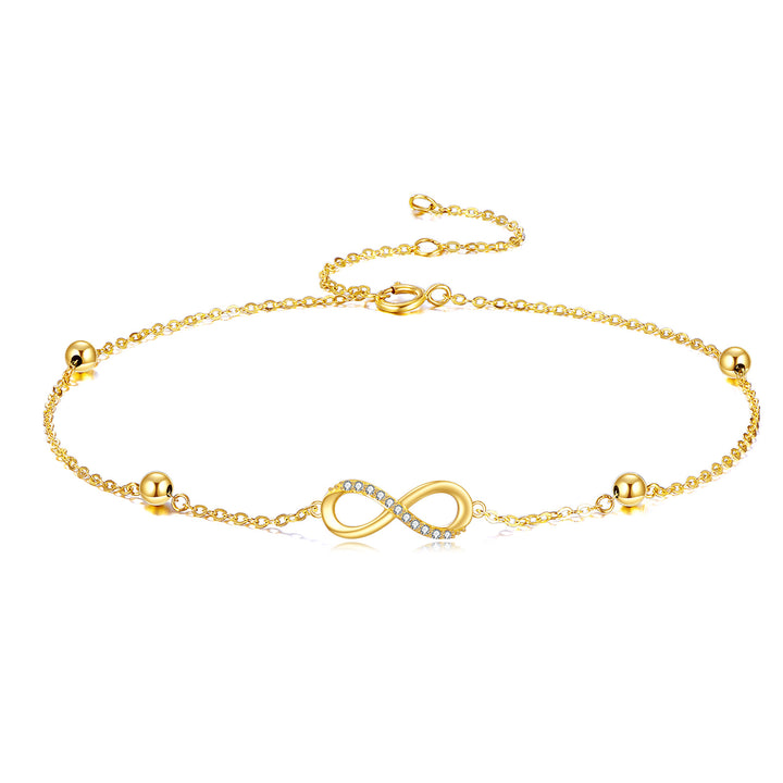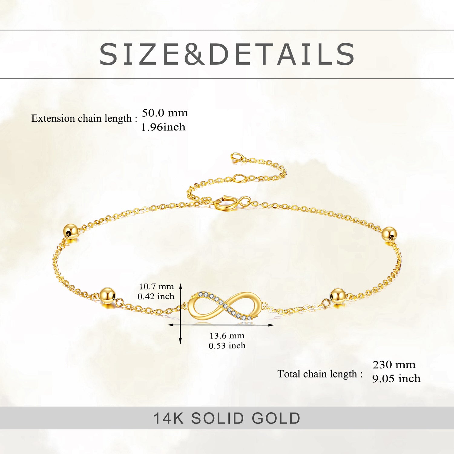 14K Yellow Gold Circular Cubic Zirconia Infinity Symbol Charm Bracelet