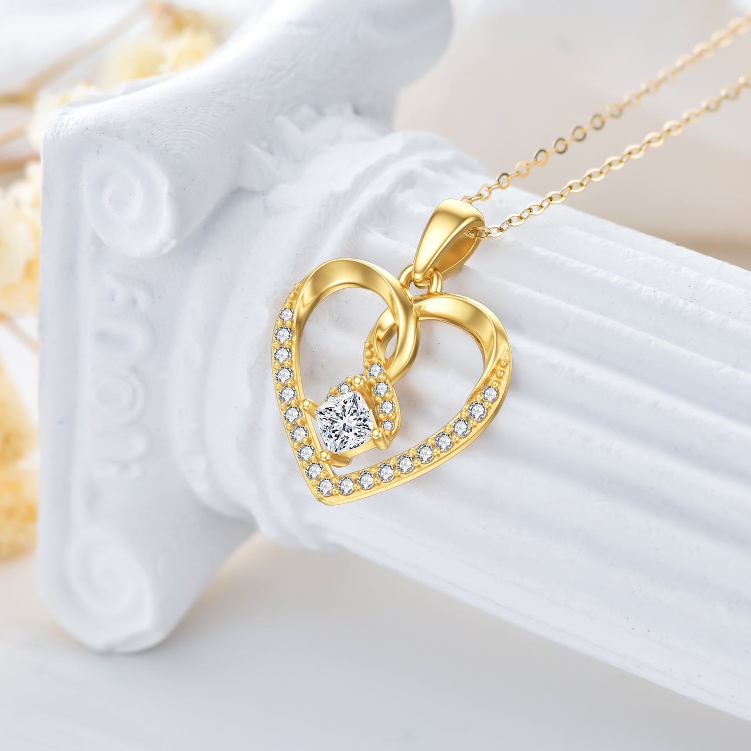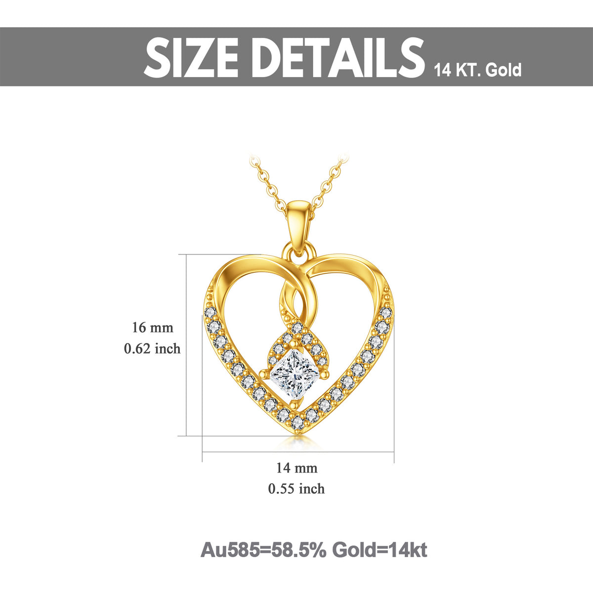 This 14K Gold Heart Shaped Cubic Zirconia Pendant Necklace by YFN is a stunning piece for women. Crafted with 14K gold, this heart-shaped Pendant Necklace showcases a brilliant heart-shaped White Cubic Zirconia, offering a perfect blend of luxury and affordability. Its elegant design makes it an ideal gift or a charming addition to your personal collection.