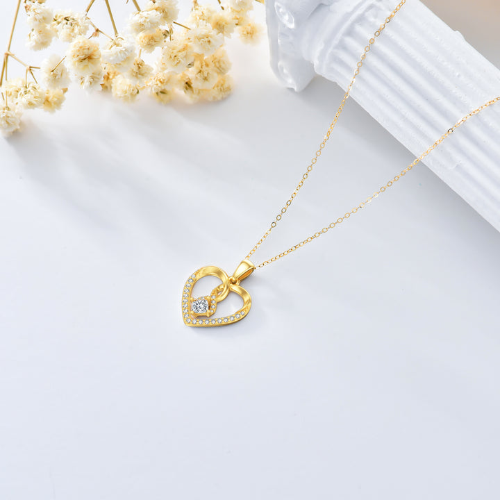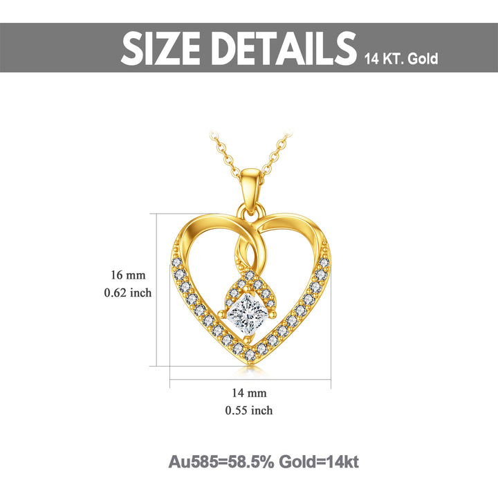 14K Gold Heart Shaped Cubic Zirconia Pendant Necklace