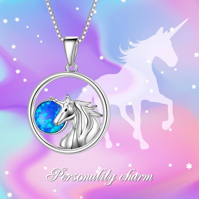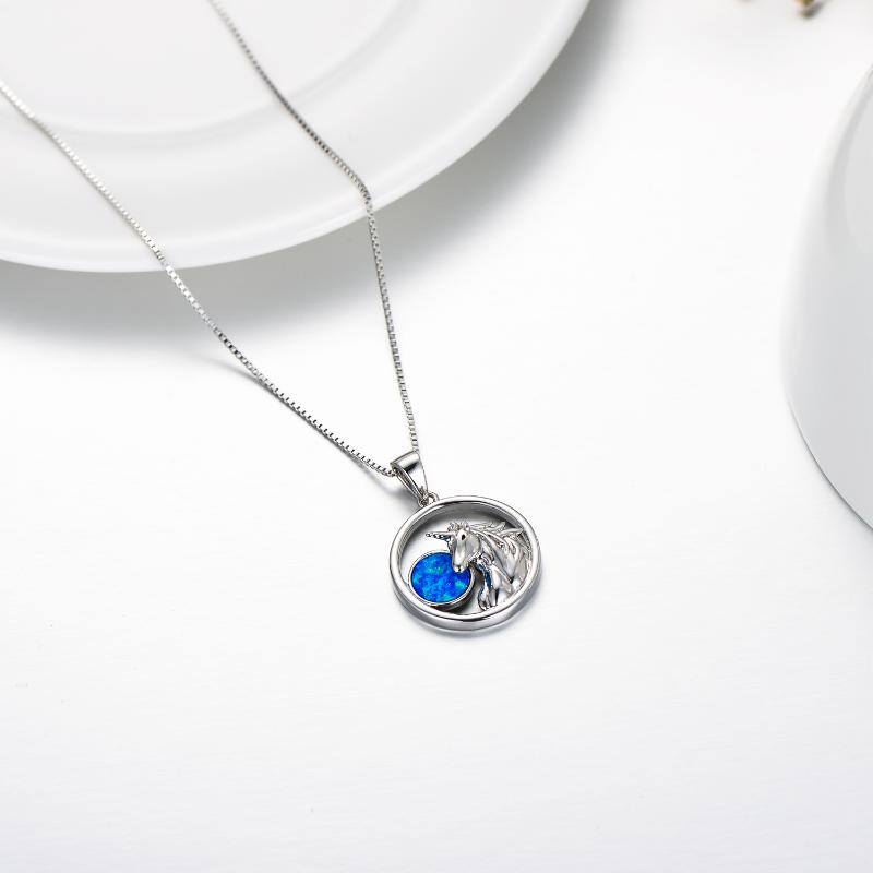 Sterling Silver Opal Circle Unicorn Box Chain Necklace for Women Men