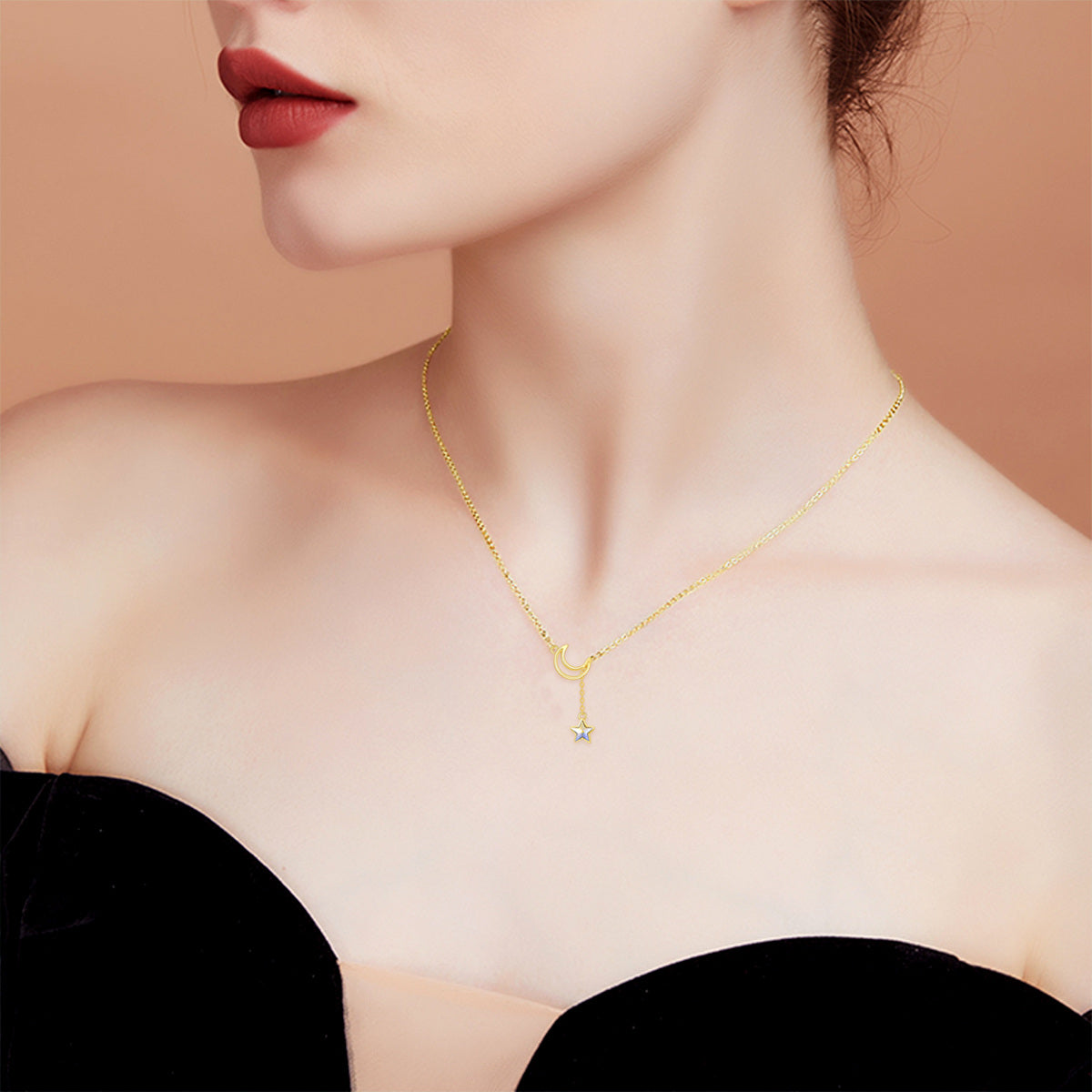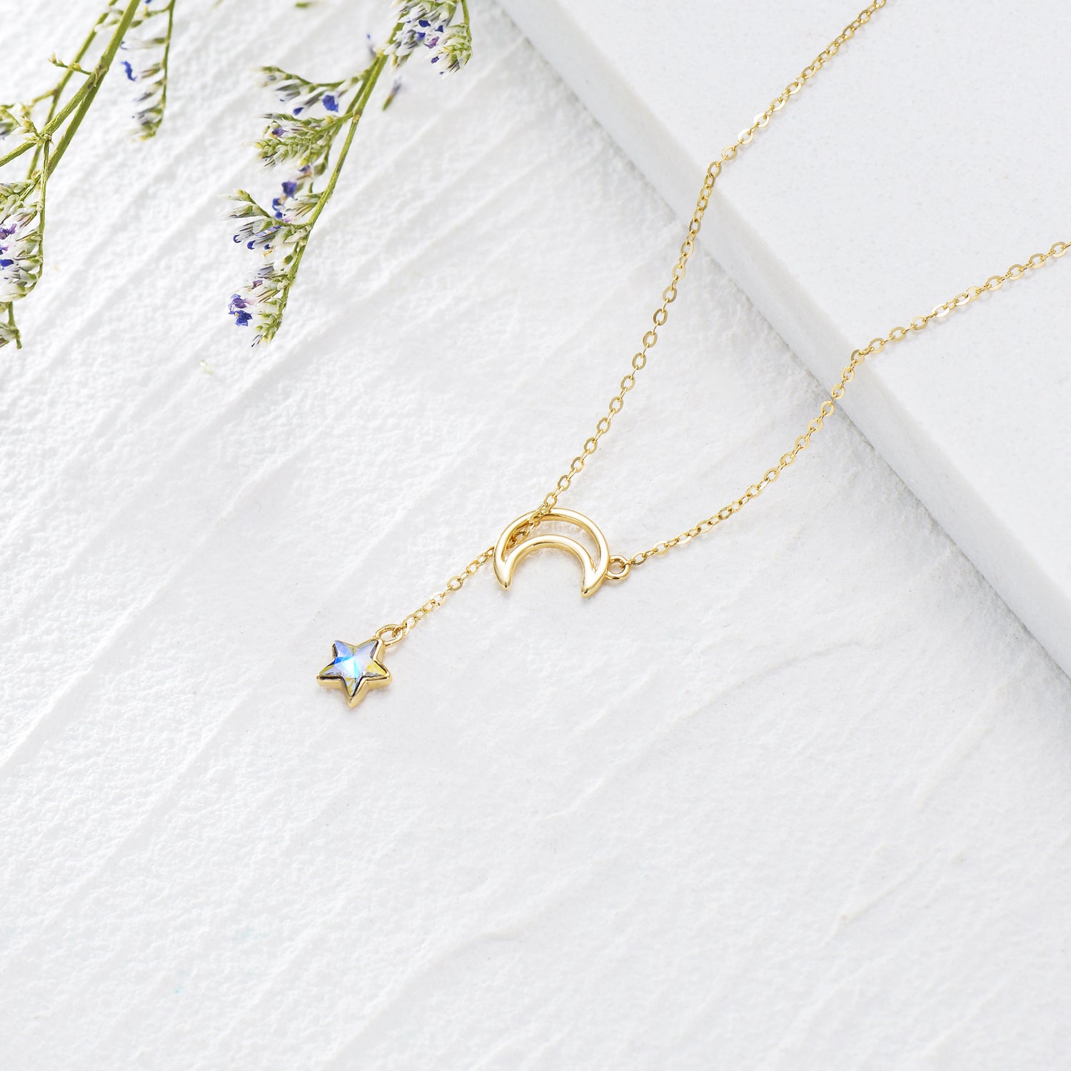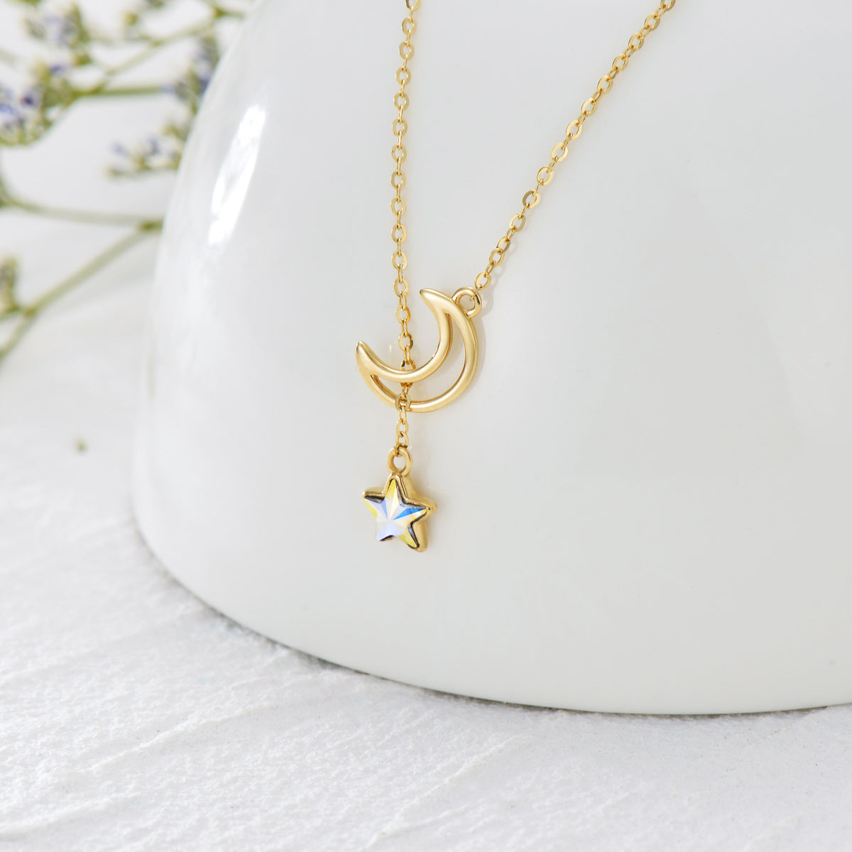 14K gold; star motifs; crystals; adjustable Y silhouette; includes chain.