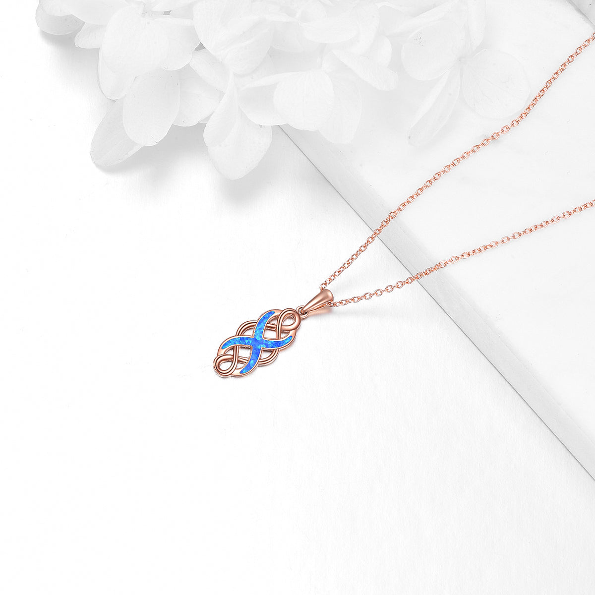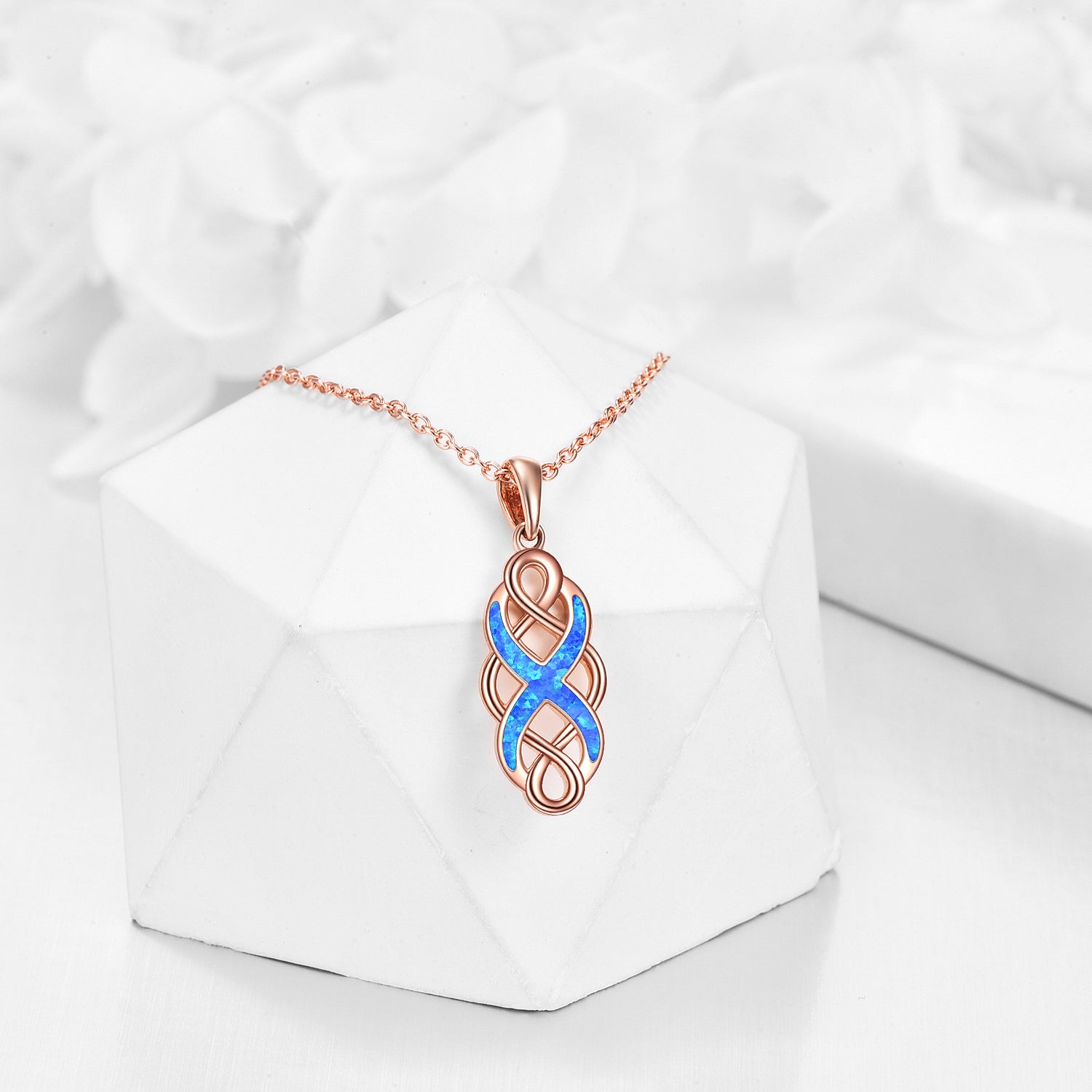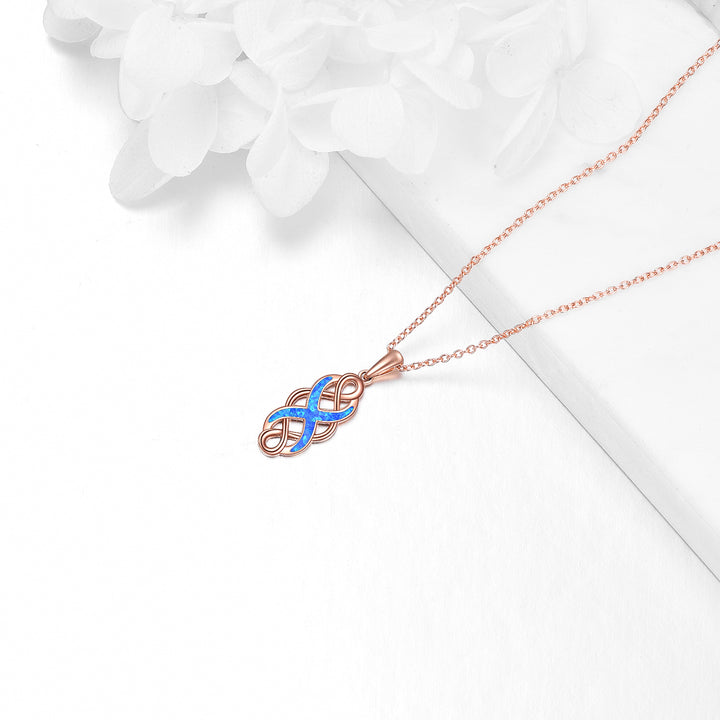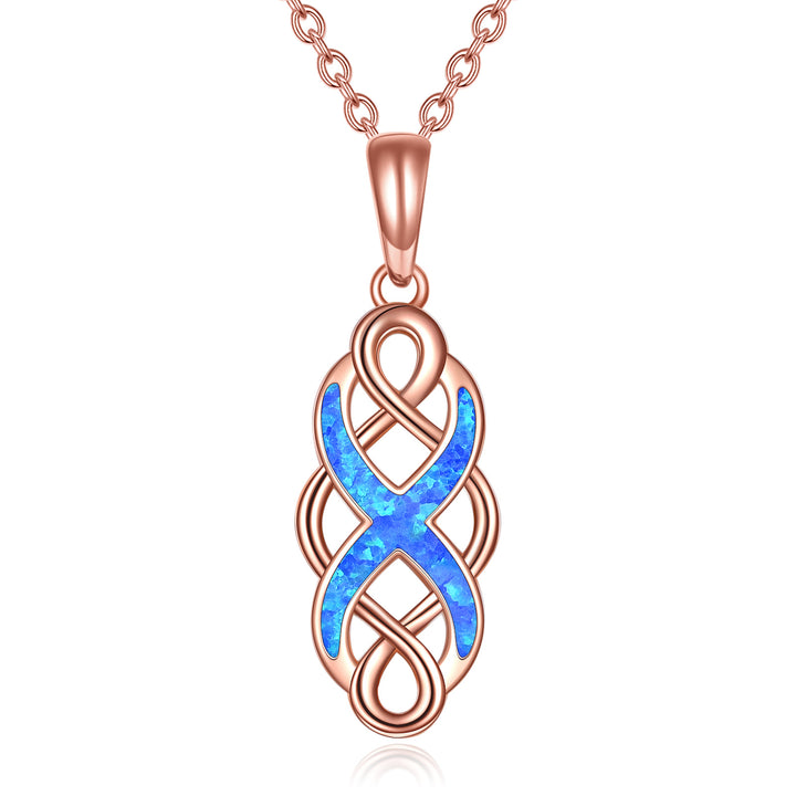 14K Rose Gold Opal Celtic Knot Pendant Necklace