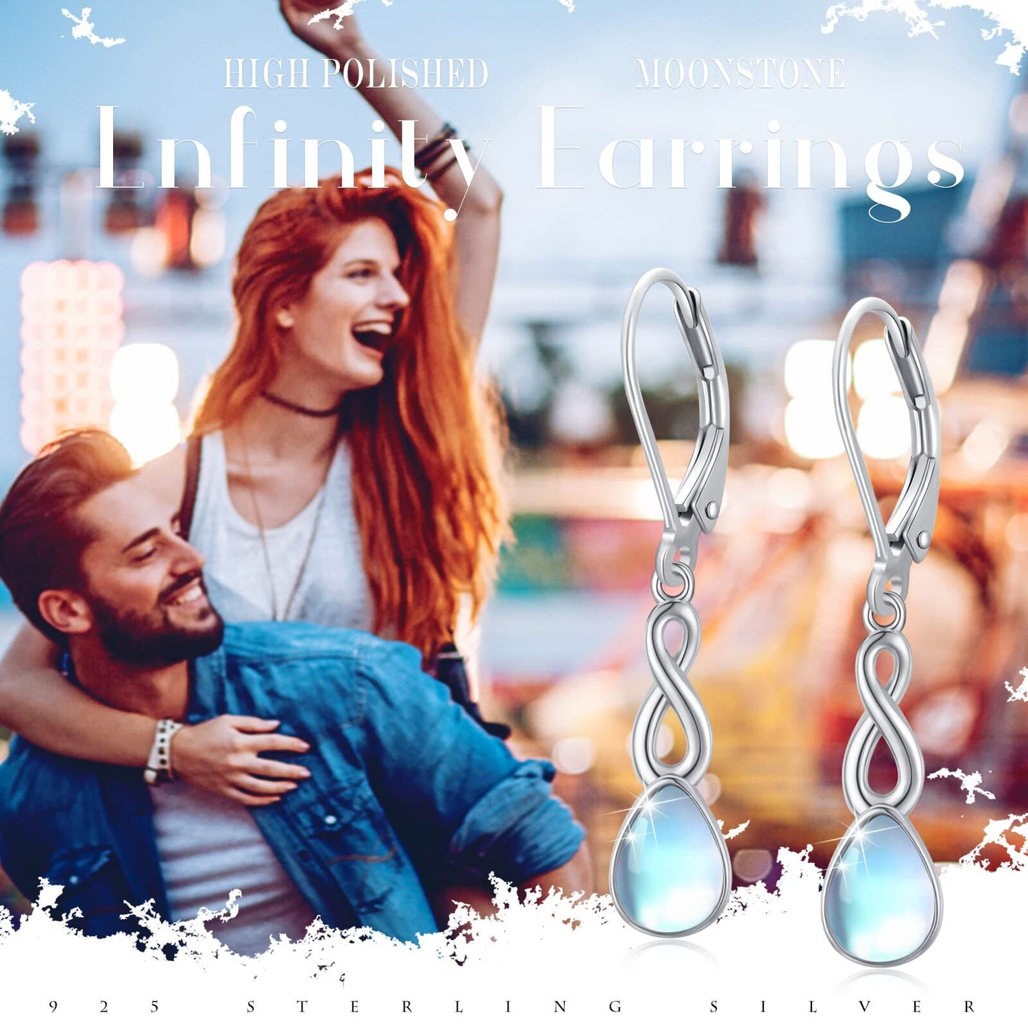 These Sterling Silver Moonstone Infinity Symbol Lever-back Earrings by YFN feature a captivating Moonstone set in a timeless Infinity Symbol design. Elegantly White Gold Plated over sterling silver, they embody everlasting elegance and a touch of ethereal beauty, ensuring a dazzling accessory for any occasion.