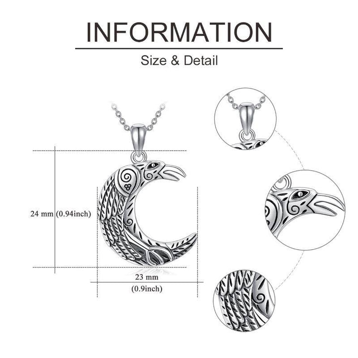 This no-stone Women's Pendant Necklace is crafted from High-Quality Sterling Silver with Retro Silver Finish, Featuring a Striking Raven and Crescent Moon Motif.