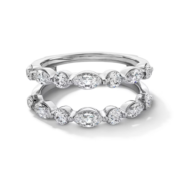 This engagement ring (available in round and marquise shapes) is crafted from 14K solid White Gold. It features a Lab Created Diamond (1.5 CT. T.W., D color, VVS1-VS1 clarity). It is IGI Certified (3EX polish/cut/symmetry) and offers personalized engraving.