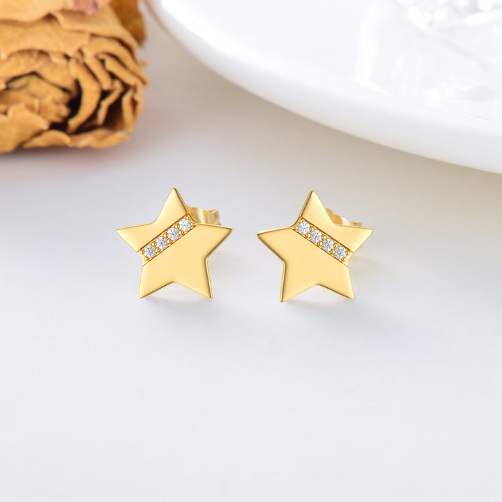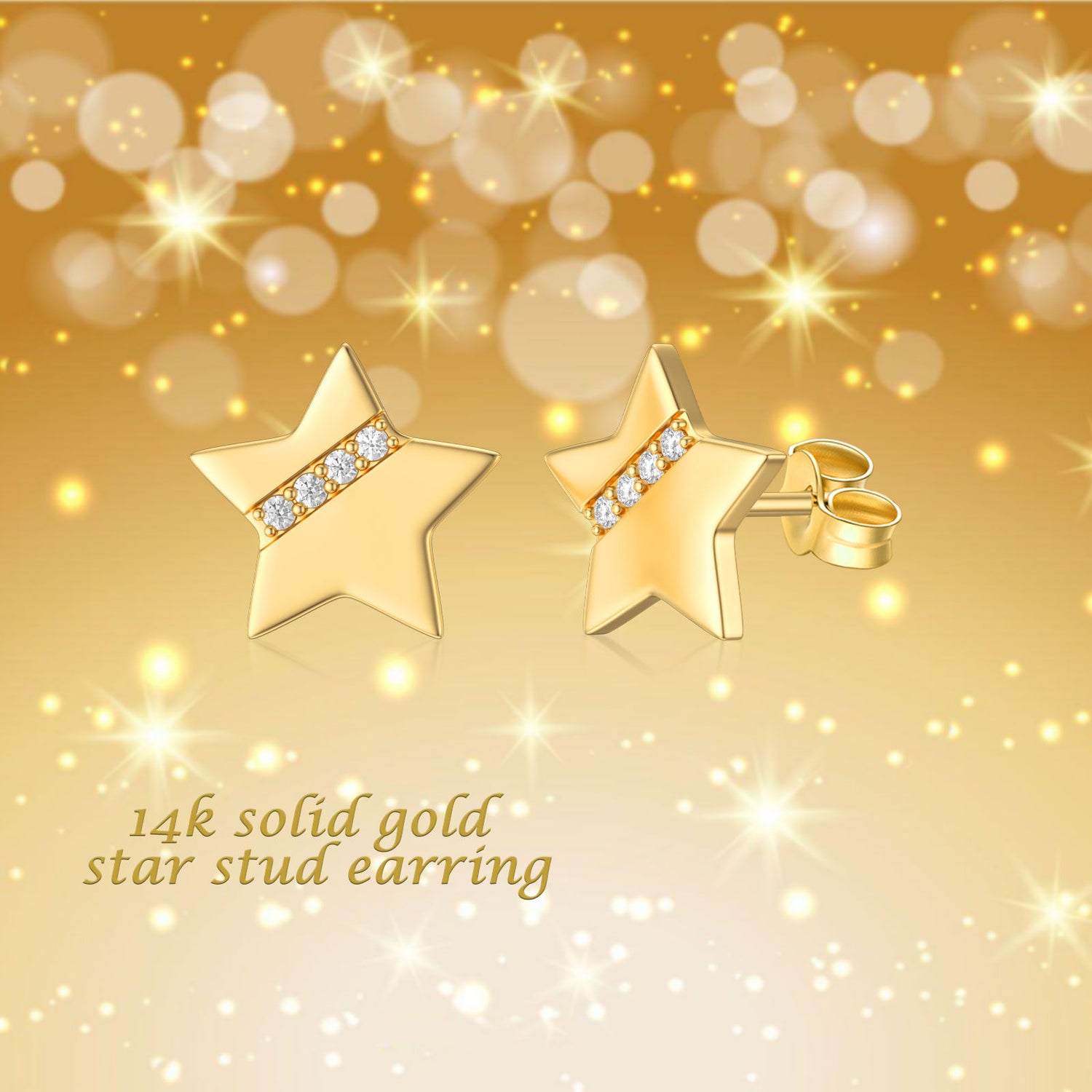 14K Gold Cubic Zirconia Stars Stud Earrings