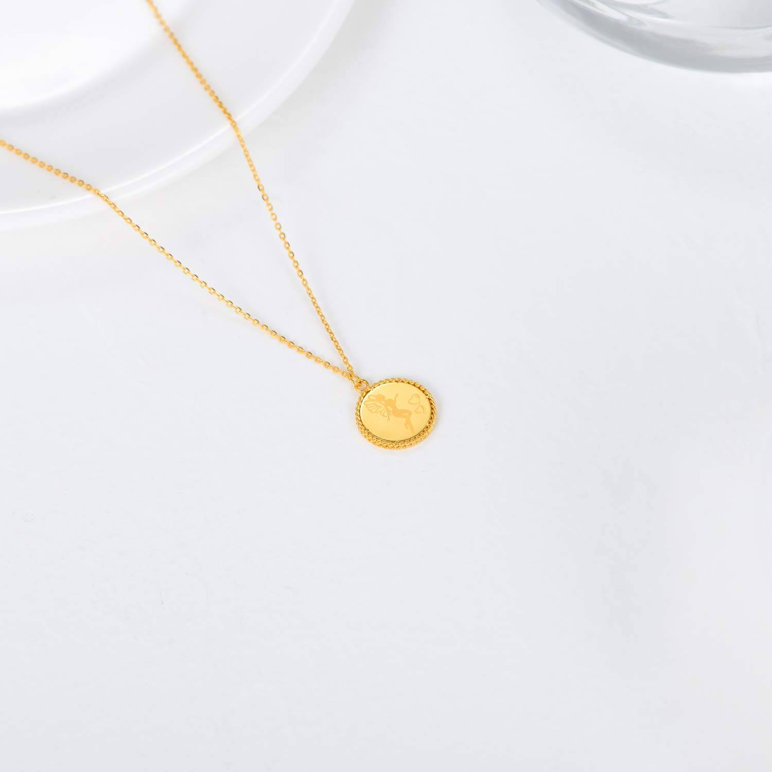 This 18K Gold Angel Wing and Fairy Coin Pendant Necklace by YFN captures ethereal charm through a graceful angel wing etched onto a sleek gold coin. Stone-free and beautifully crafted, the design symbolizes guidance, love, and spiritual protection. Ideal for women who enjoy elegant pieces with subtle symbolism, this pendant brings a touch of enchantment to any look.