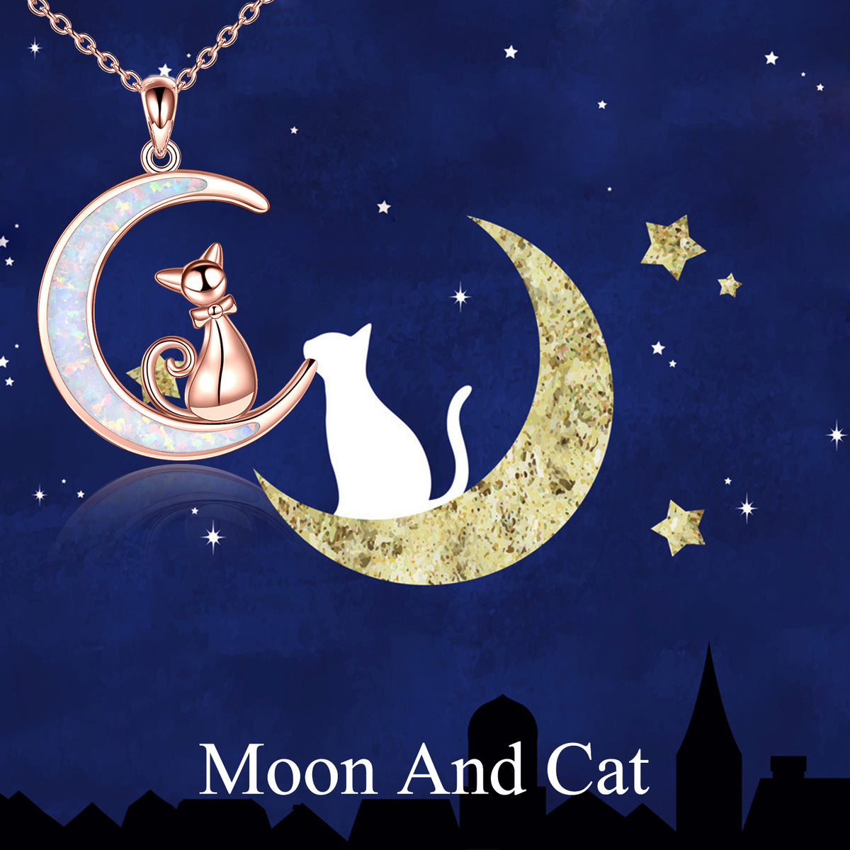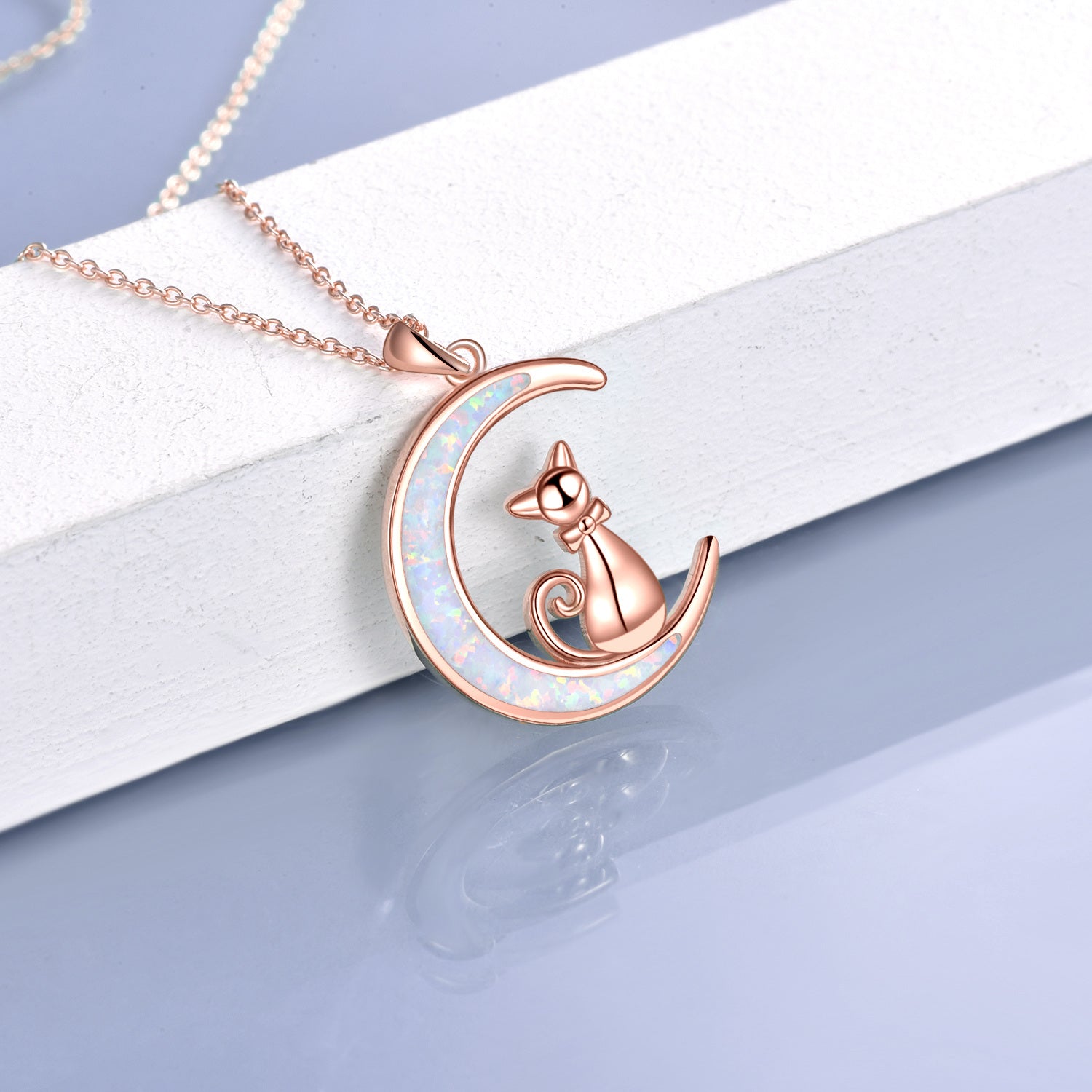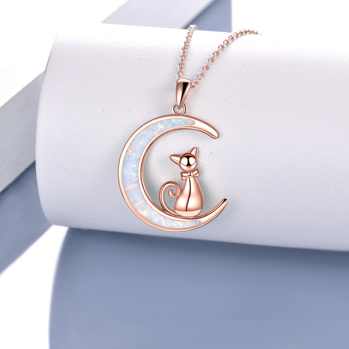 Sterling Silver with Rose Gold Plated Opal Cat Pendant Necklace