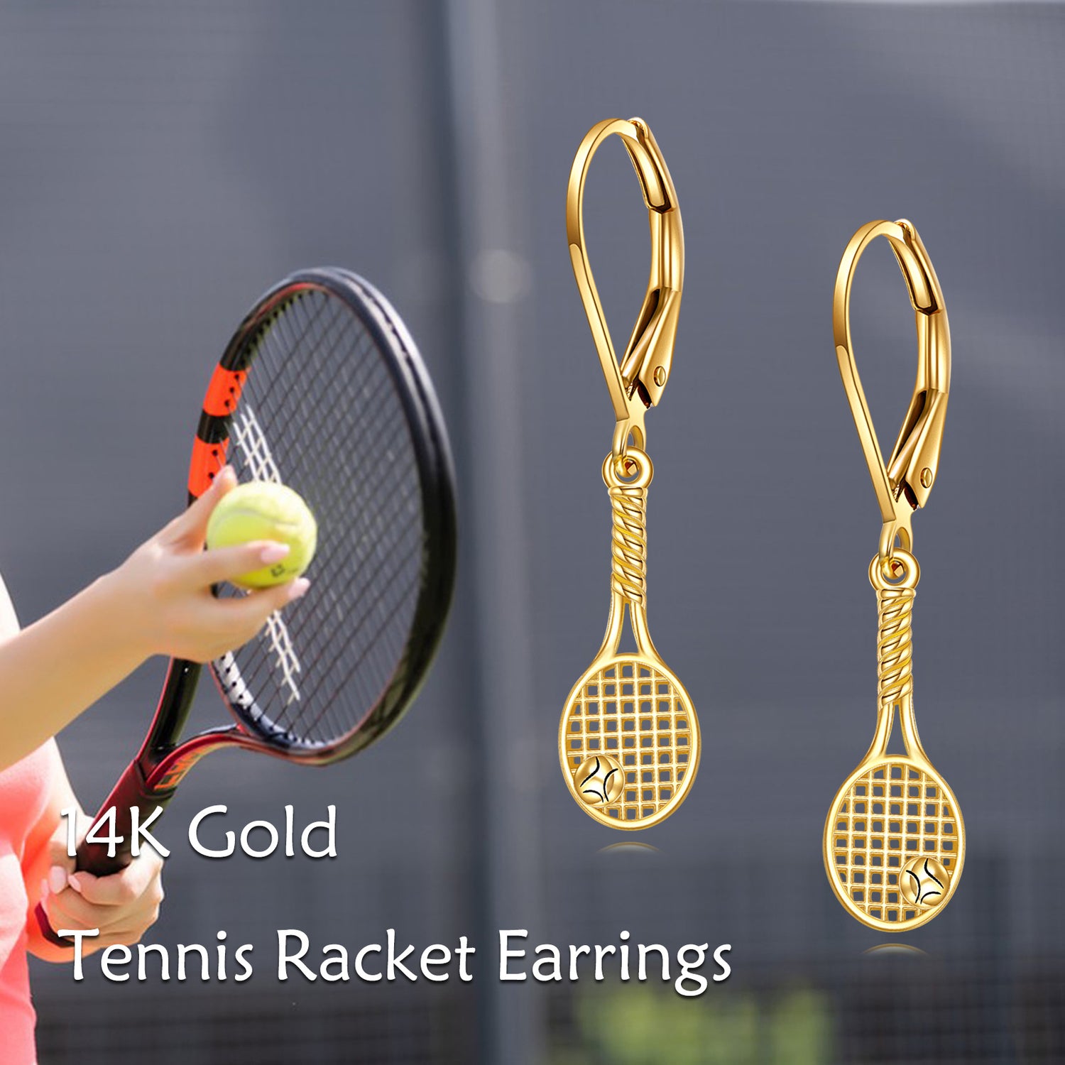 14K Gold Tennis Racket Drop Earrings