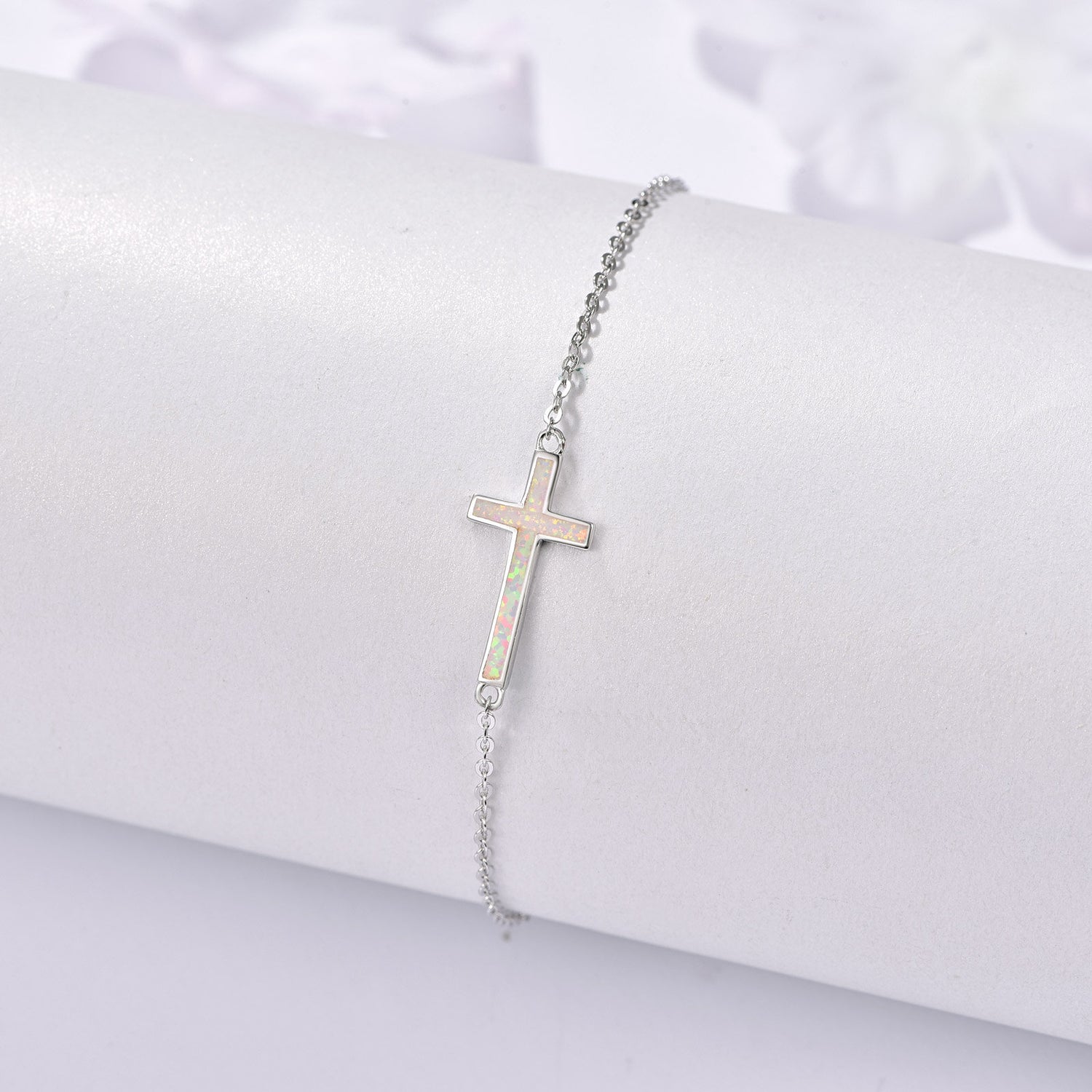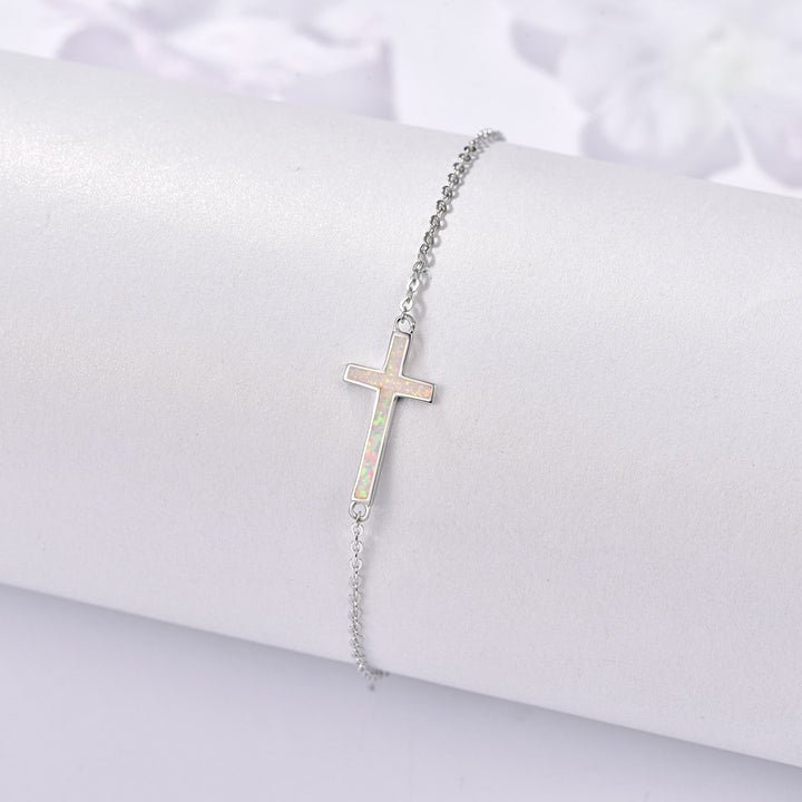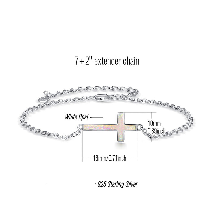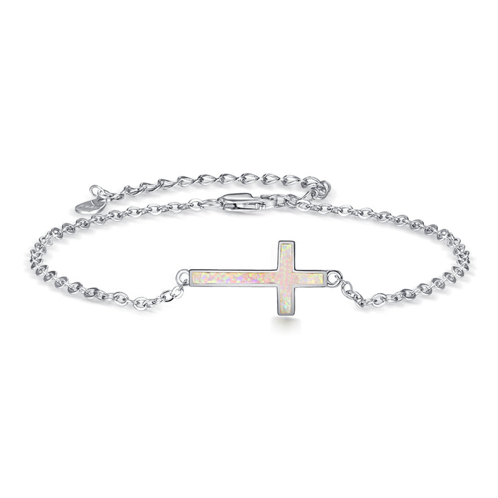 Sterling Silver Opal Cross Charm Bracelet