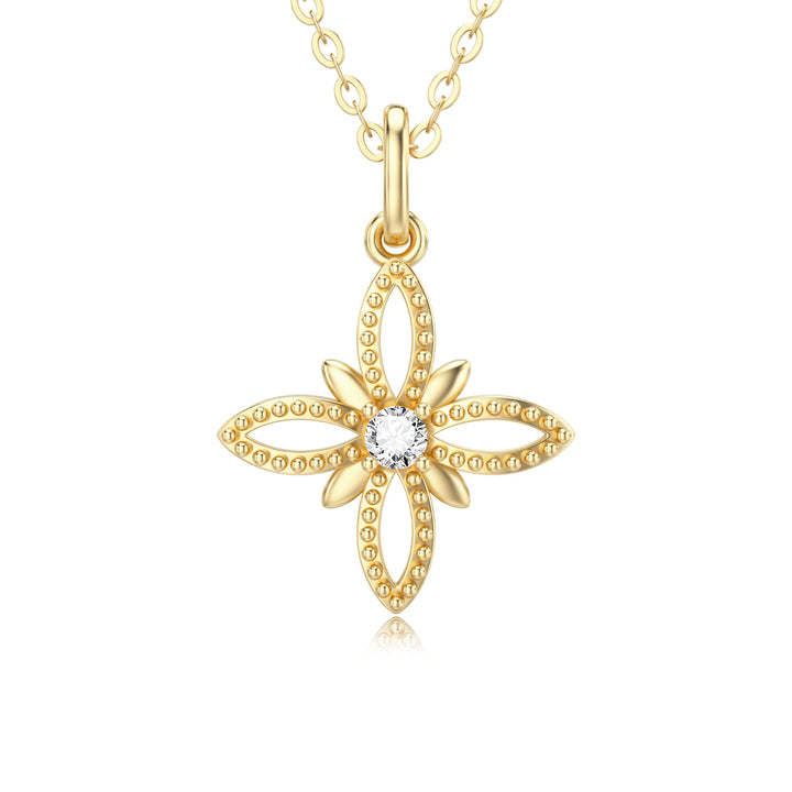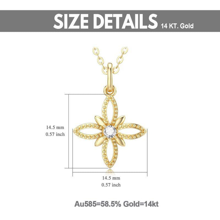 14K gold; Moissanite stones; cross-shaped pendant; includes chain.