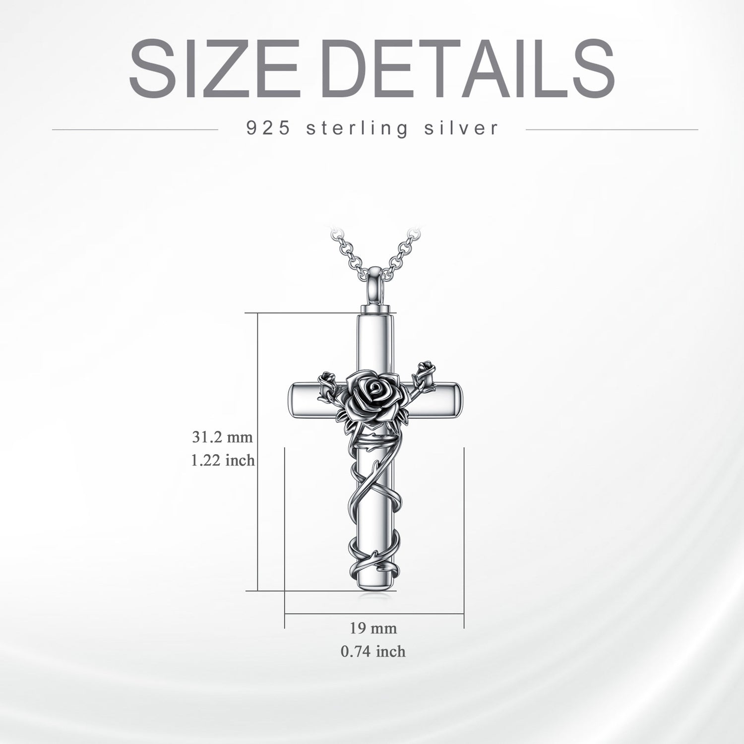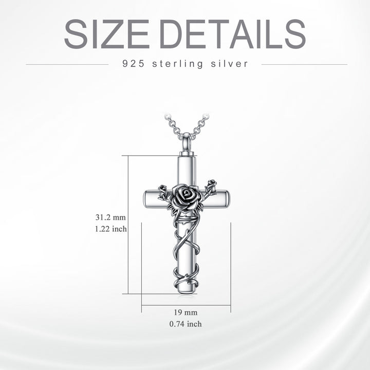 This Sterling Silver Vintage Rose & Cross Urn Necklace for Ashes by YFN is a no-stone, elegant urn necklace for women, offering a meaningful way to keep loved ones close. Crafted from Sterling Silver with a retro silver design, it features a delicate rose and cross motif.