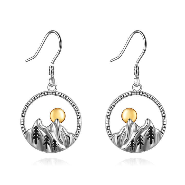 Sterling Silver Two-tone Mountains & Sun Drop Earrings