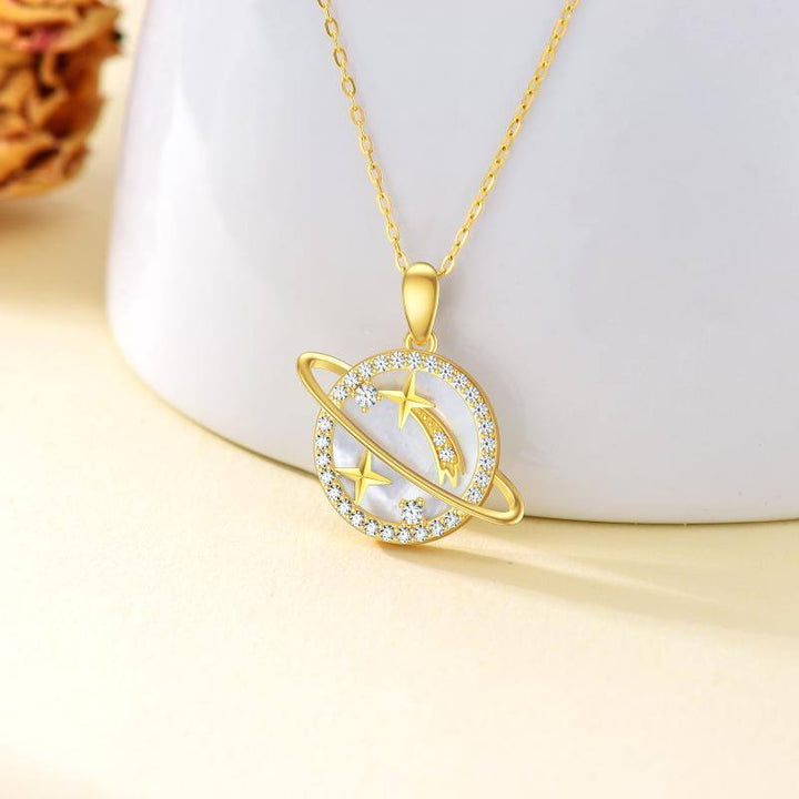 This Women's Pendant Necklace is crafted from 14K Gold, featuring a Star Design Inlaid with Mesmerizing Abalone Shellfish.