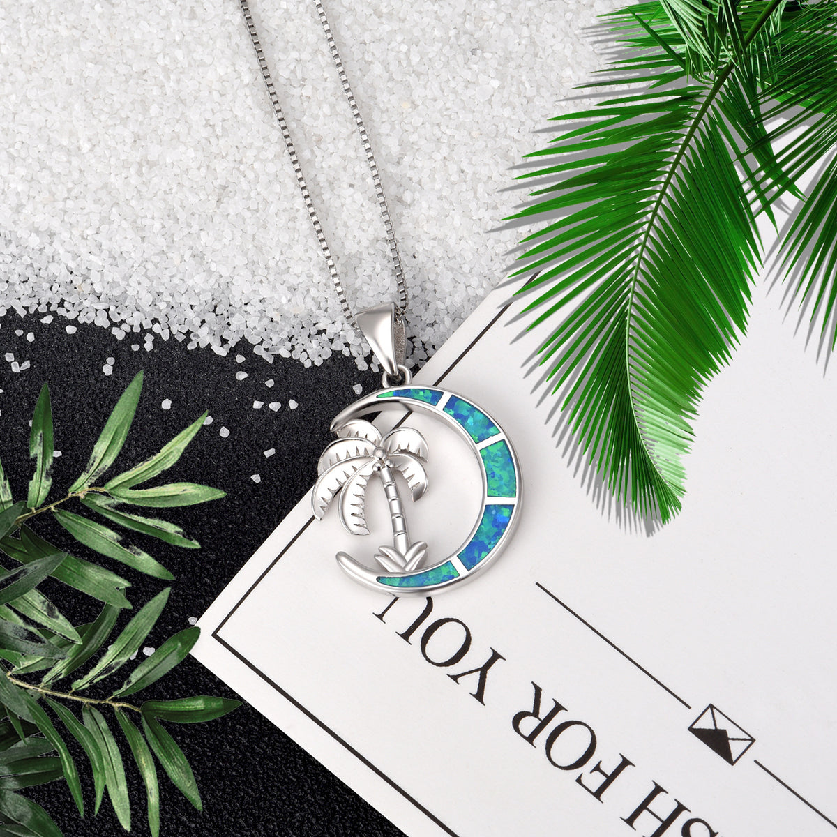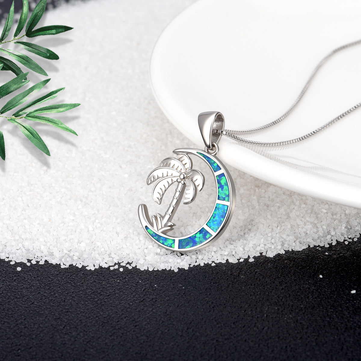 Sterling Silver Opal Coconut Tree Moon Necklace for Women Men