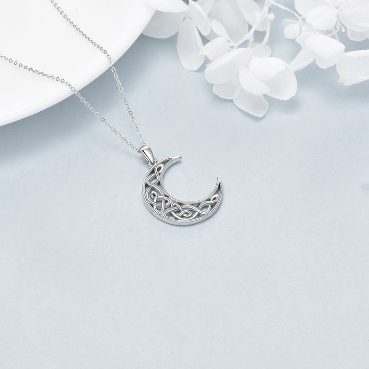 Sterling Silver Celtic Knot & Moon Pendant Necklace