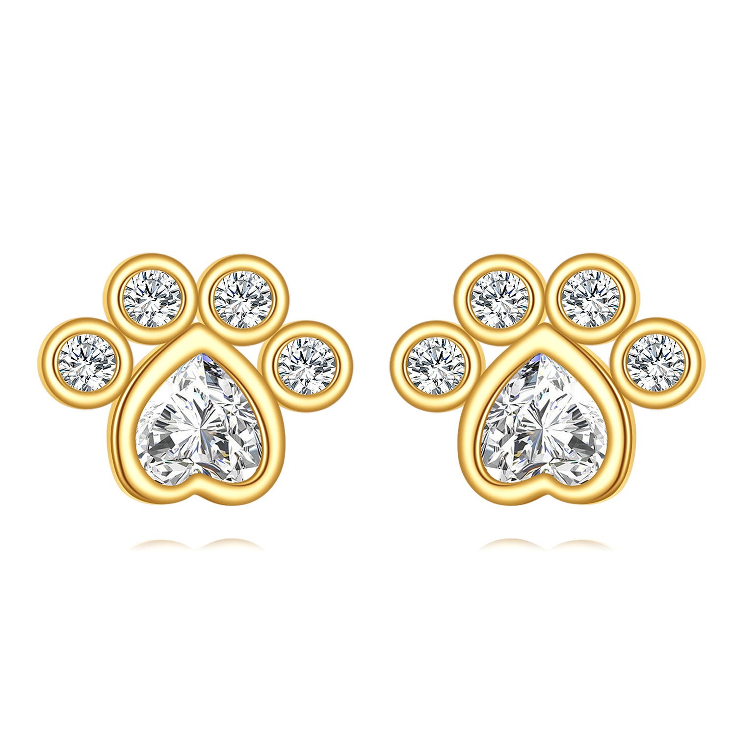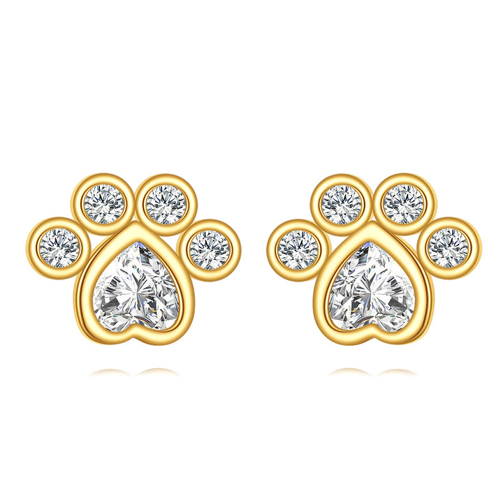 Crafted in 14K gold with cubic zirconia stones. Dog-shaped stud design with standard post-and-back closure. Hypoallergenic construction suitable for everyday wear.