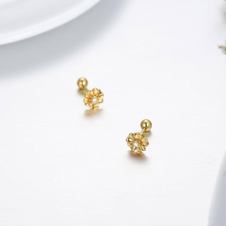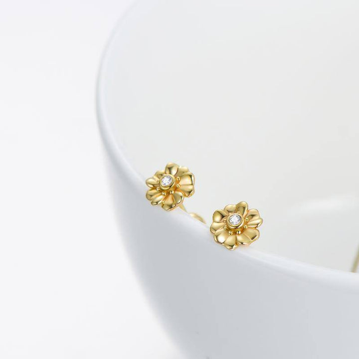 14K Gold Crystal Cherry Blossom Stud Earrings