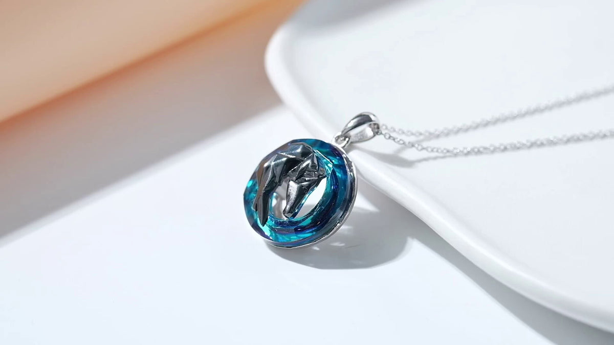 This Sterling Silver Two-tone Round Horse Crystal Pendant Necklace by YFN is an exquisite piece for women who appreciate elegance and uniqueness. This stunning round pendant, featuring a captivating blue crystal set within a beautifully detailed horse motif, is a breathtaking blend of silver and black tones. This necklace showcases remarkable craftsmanship, ensuring it stands out as a striking accessory that combines classic and contemporary styles, adding glamour and grace to any jewelry collection.
