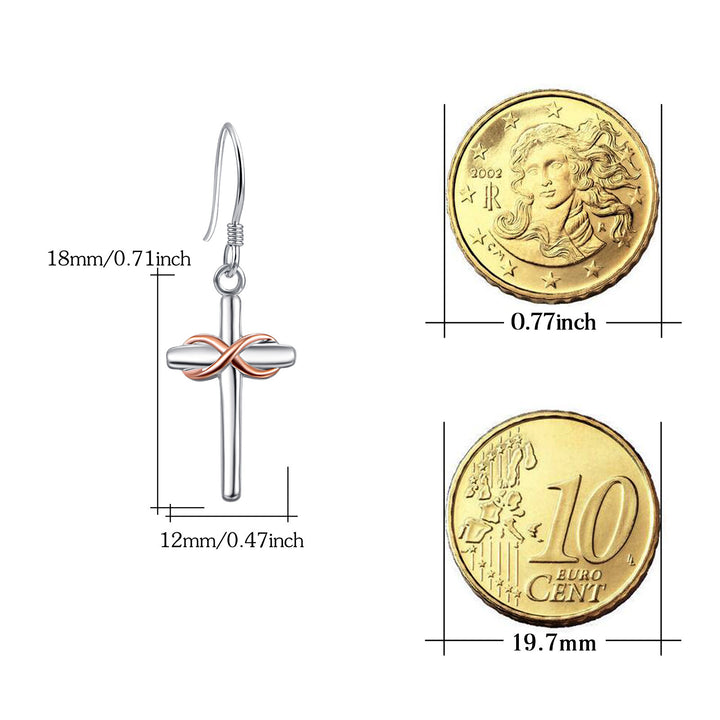 Made from high-quality Sterling Silver, these no-stone Drop Earrings feature Cross and Infinity Symbol Motifs in Silver and Rose Gold Two-Tone.