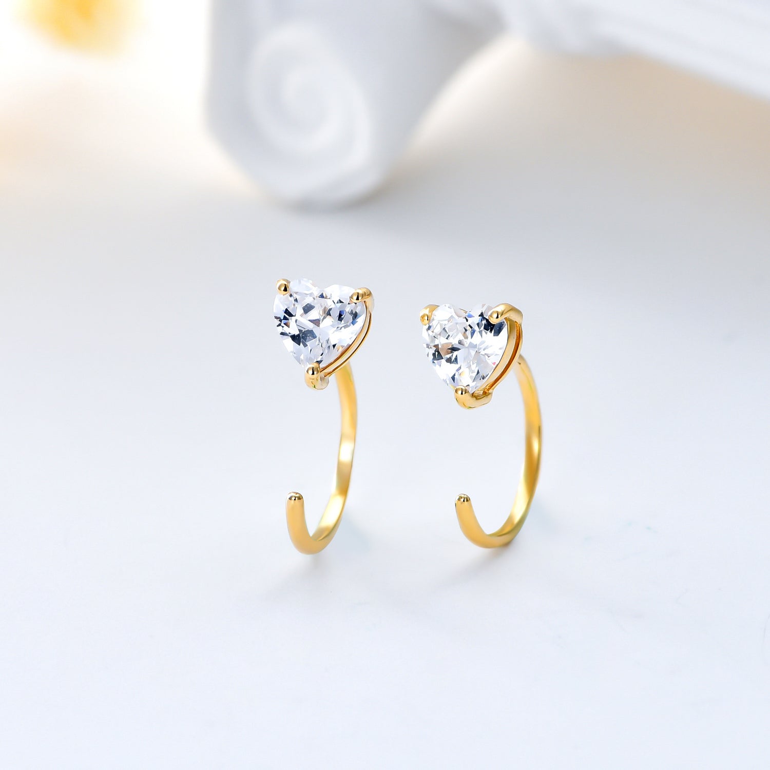 14K Gold Heart Cubic Zirconia Heart Hoop Earrings For Women