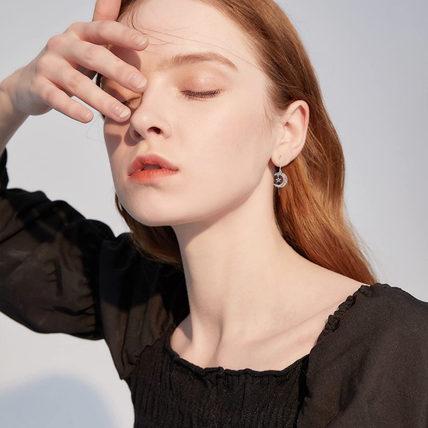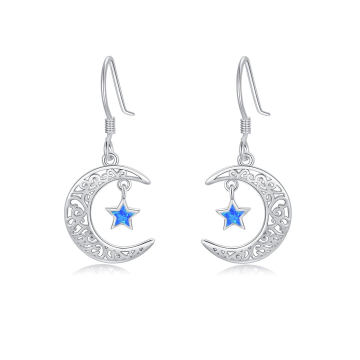 These Drop Earrings are crafted from Sterling Silver with White Gold Plating, Featuring Opulent Opal Moon Designs.