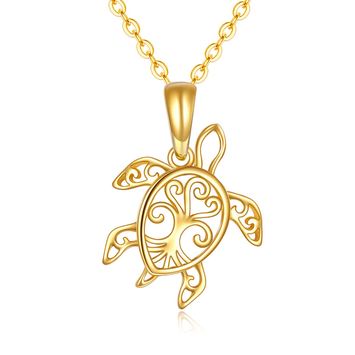 This pendant necklace is crafted entirely from Solid 14K Gold and features a stone-free, minimalist Sea Turtle motif pendant.