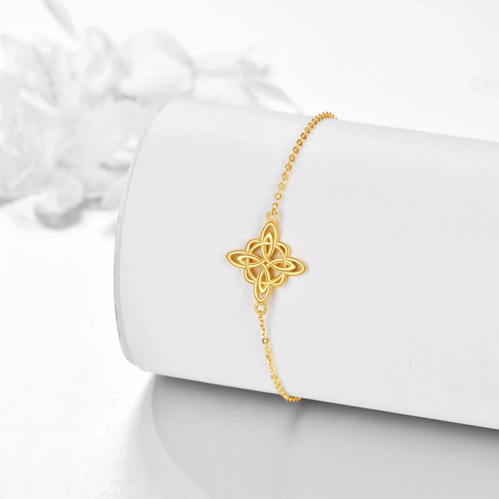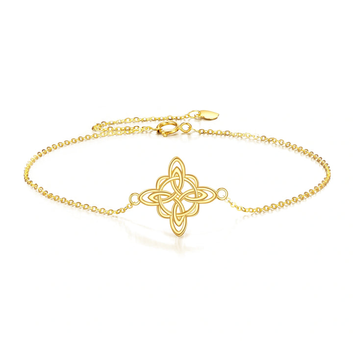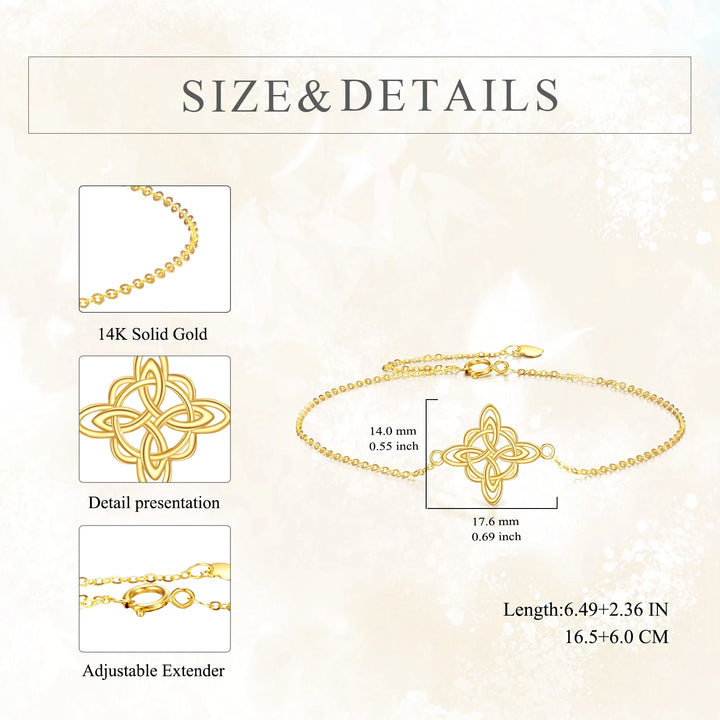 This 14K Gold Celtic Knot Charm Bracelet by YFN is a no-stone, stunning accessory for women who embrace both tradition and modern sophistication. Crafted from 14K gold, this exquisite charm bracelet features a masterfully detailed Celtic knot, symbolizing eternity and interconnectedness. Its minimalist design focuses on the brilliant gold's natural radiance, making it an ideal, timeless choice for any occasion.