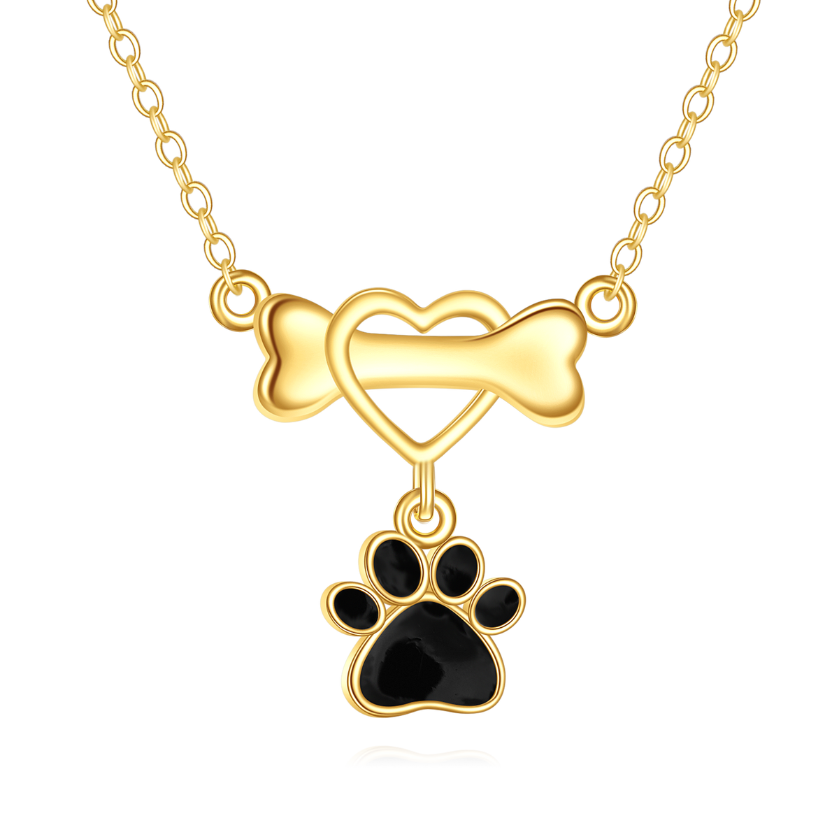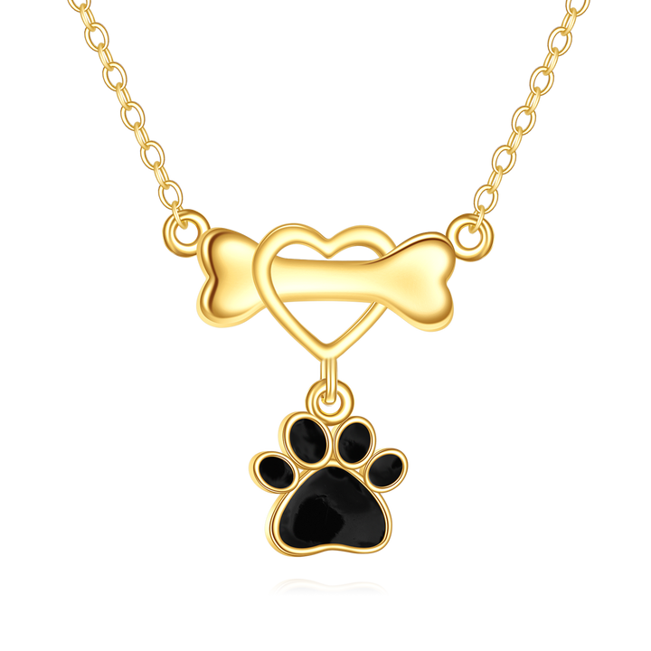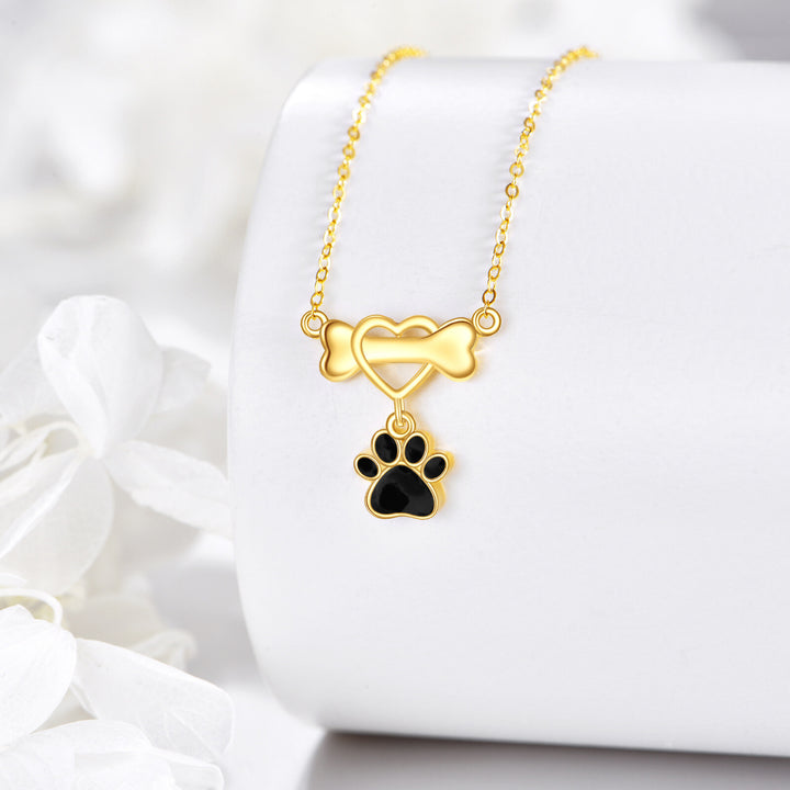 14K Gold Cat Paw & Dog Pendant Necklace Gifts for Women