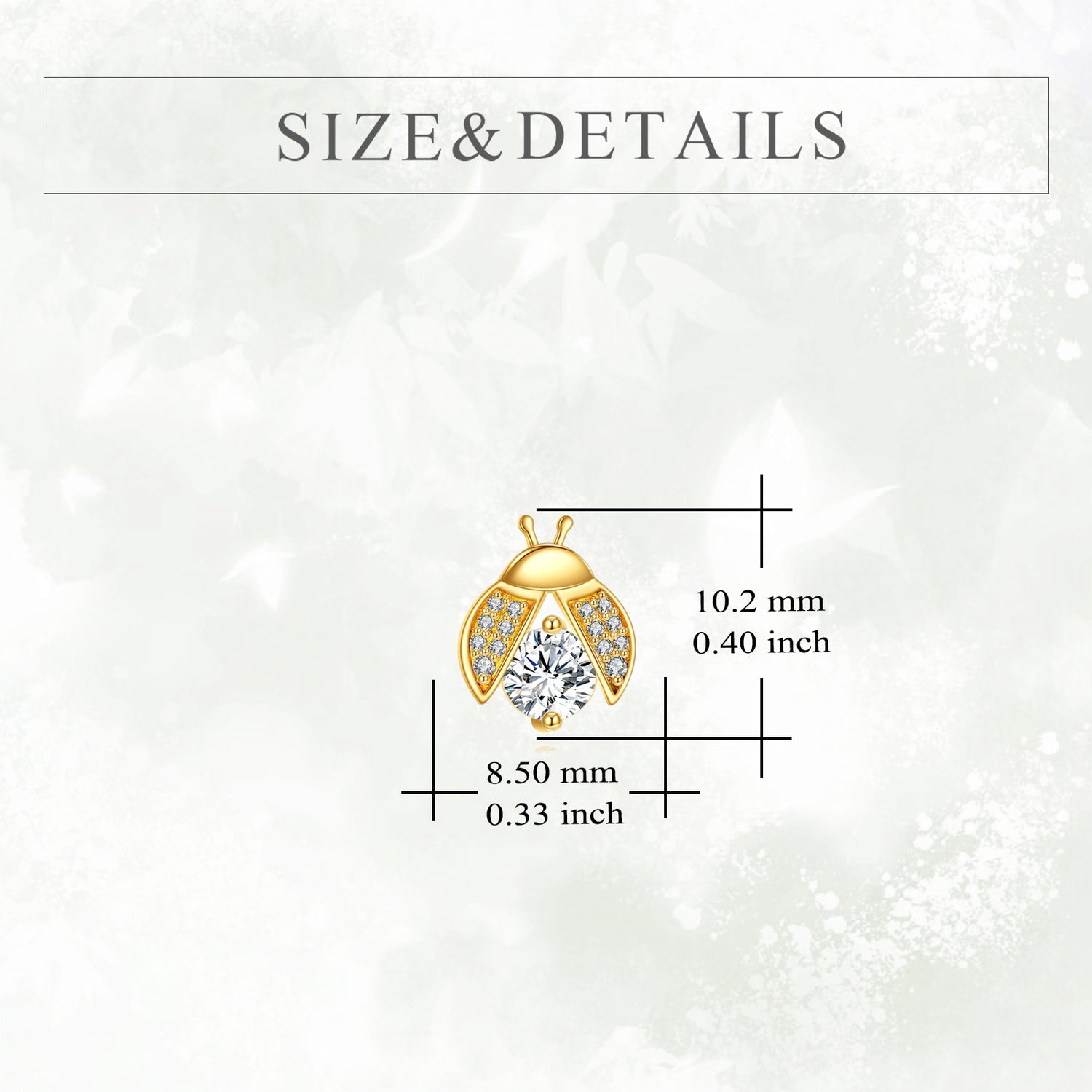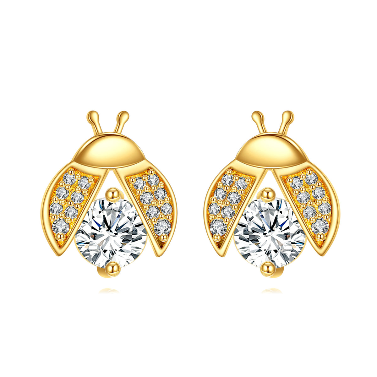 These stud earrings are crafted from 14K solid gold. They feature a ladybug design set with Moissanite stones.