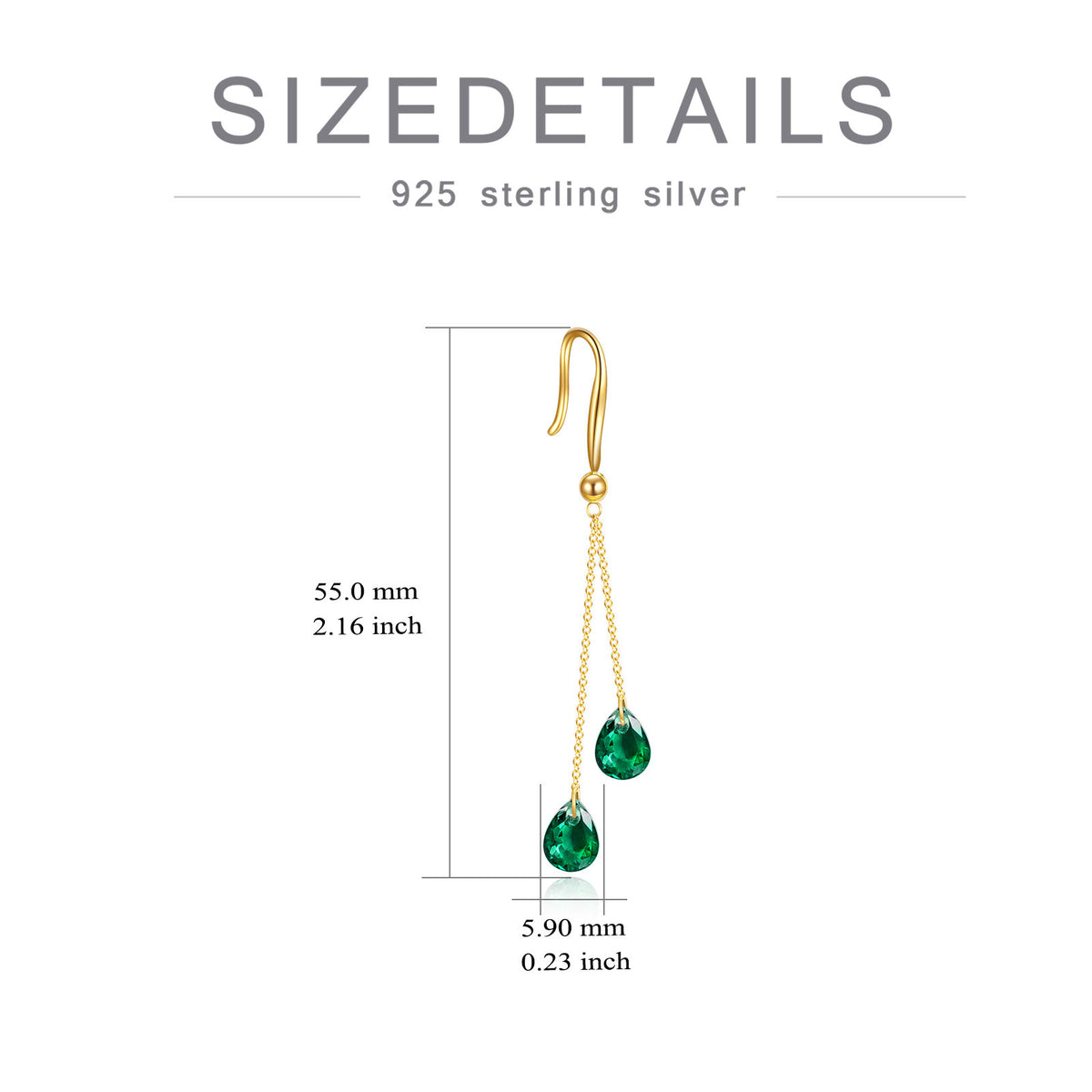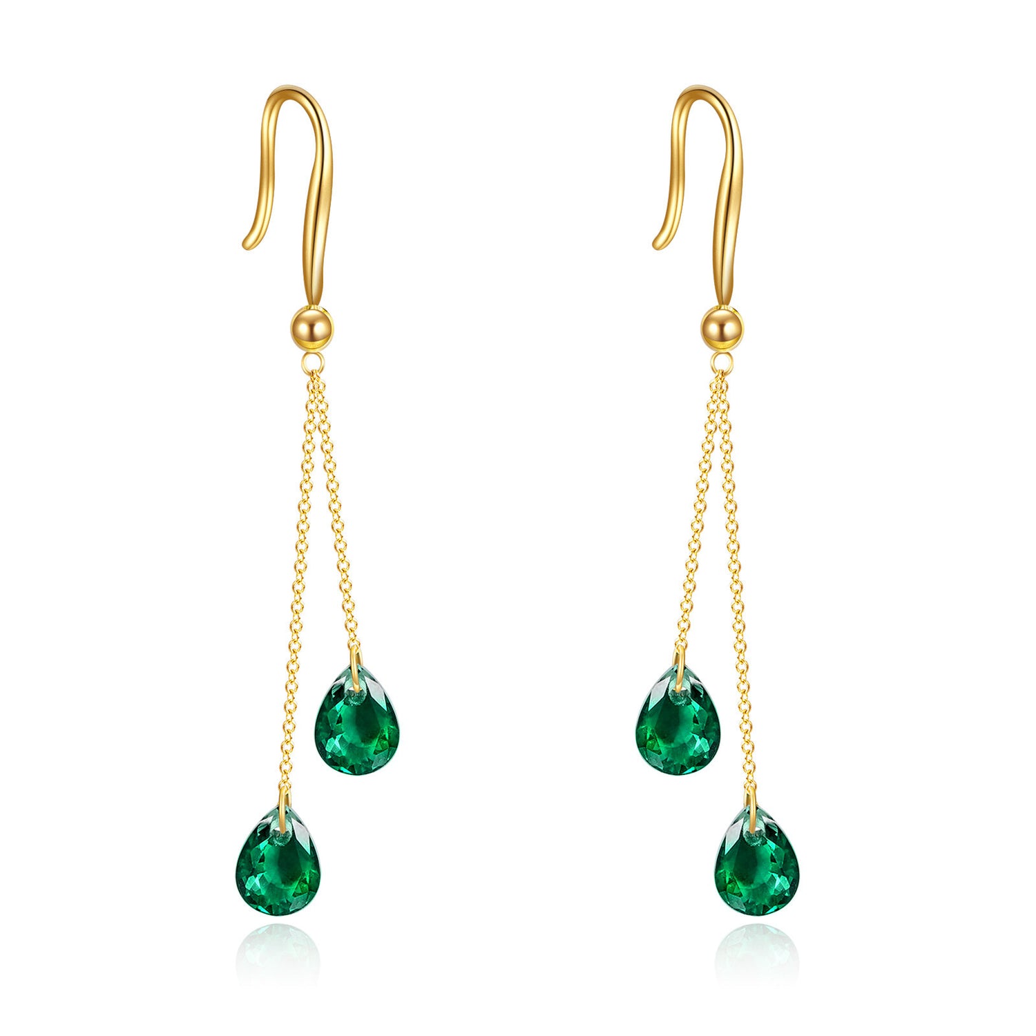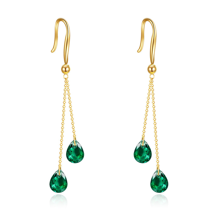 14K Gold Pear Emerald Cubic Zirconia Drop Earrings For Women