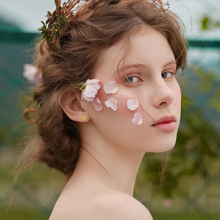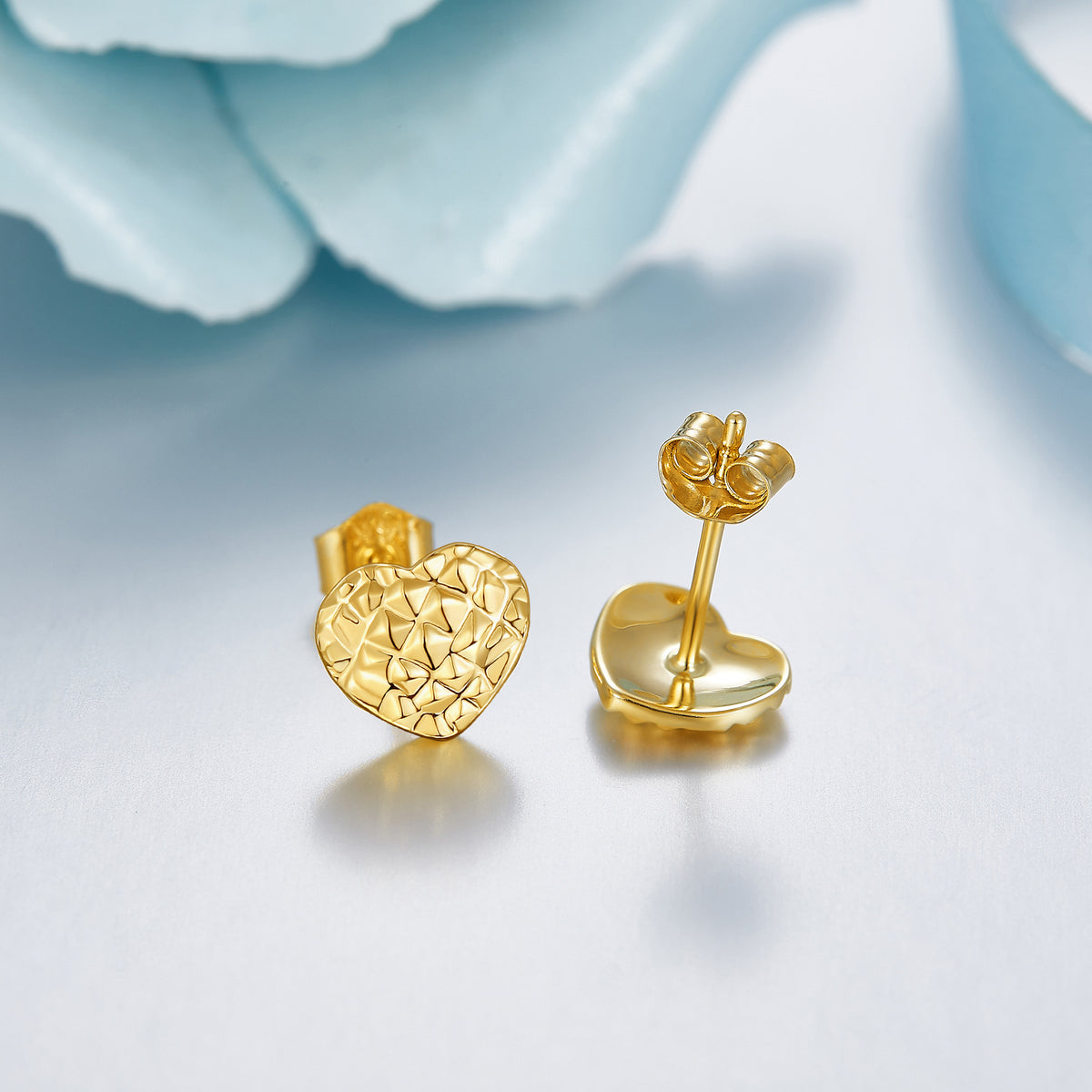These no-stone Women's Stud Earrings are Forged from Premium 14K Gold, Featuring a Diamond-Cut Heart Design.