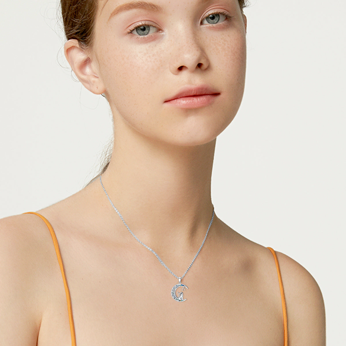 This Pendant Necklace is crafted from High-Quality Sterling Silver with White Gold Plating and Features a Charming Cat-Shaped Design.