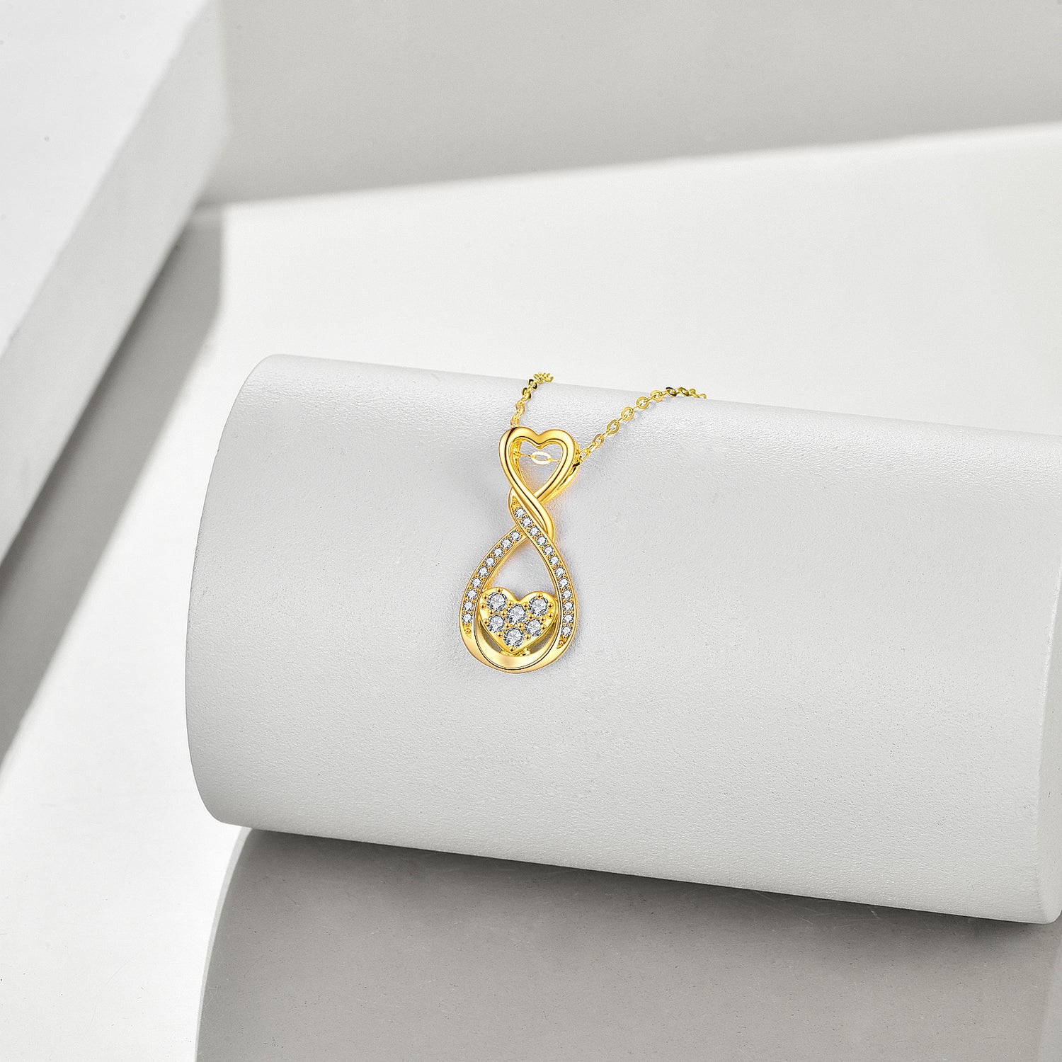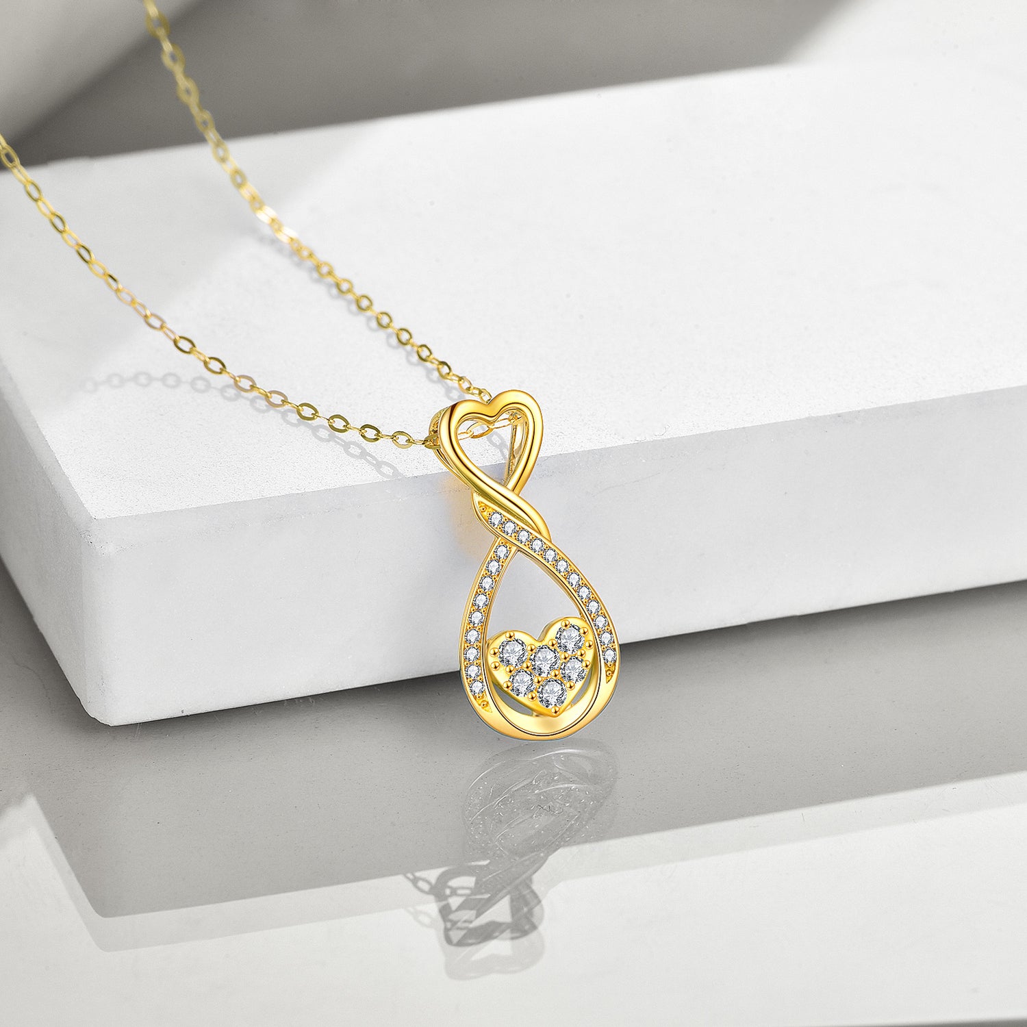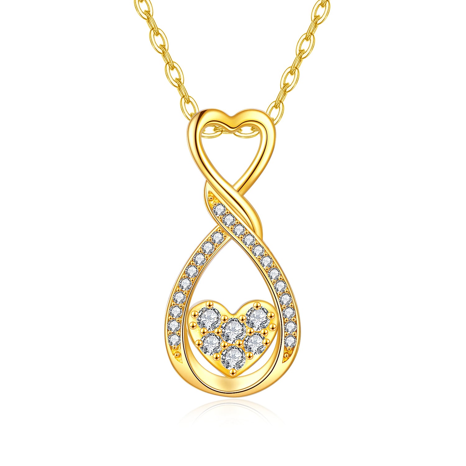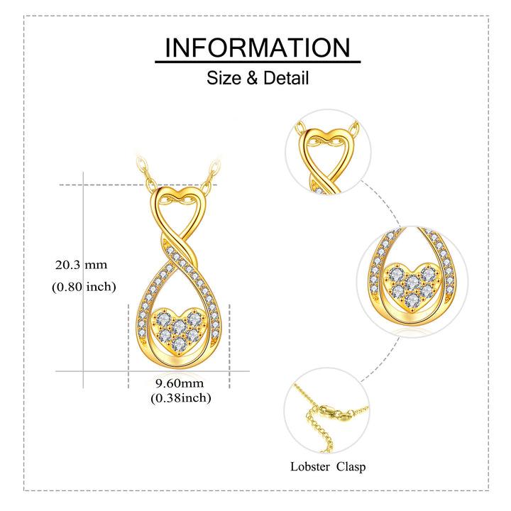 14K Gold Cubic Zirconia Heart & Infinity Symbol Pendant Necklace