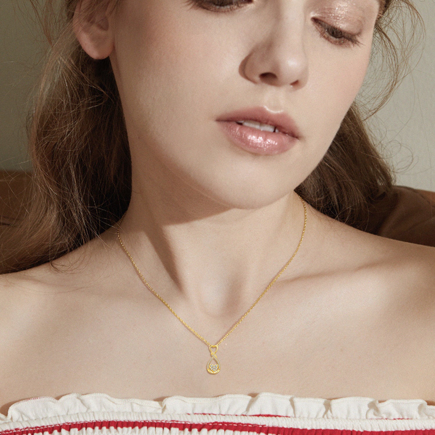 This 14K Gold Cubic Zirconia Heart & Infinity Symbol Pendant Necklace by YFN beautifully symbolizes everlasting love through its intertwined heart and infinity motifs. The radiant cubic zirconia centerpiece adds a brilliant touch of sparkle, enhancing the pendant’s romantic essence. Crafted in luminous 14K gold, this elegant necklace offers refined sophistication suitable for both daily wear and special occasions. Its meaningful design makes it a cherished gift for expressing affection, while its timeless silhouette ensures lasting appeal. Perfect for women who appreciate jewelry that blends emotional significance with classic luxury.