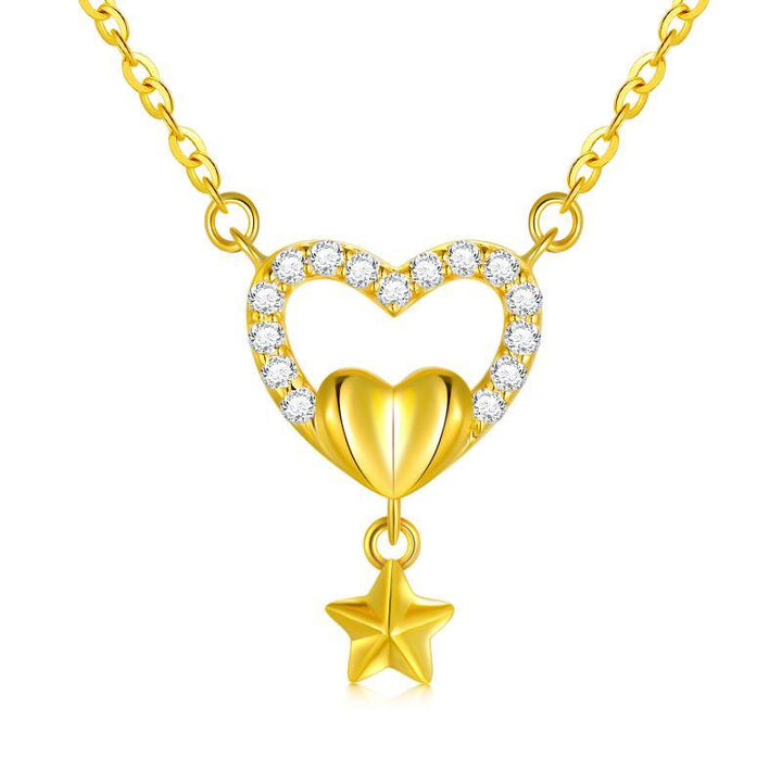 18K Gold Cubic Zirconia Heart Pendant Necklace